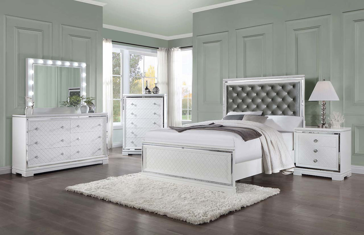 Juego de cama Queen de 5 piezas - Eleanor, juego de dormitorio Queen de 5 piezas, blanco
