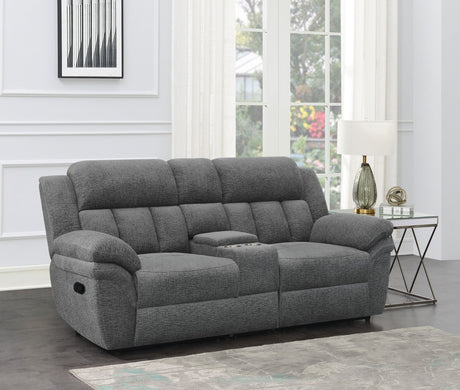 Sofá de dos plazas Weissman Motion con consola, color carbón | Coaster