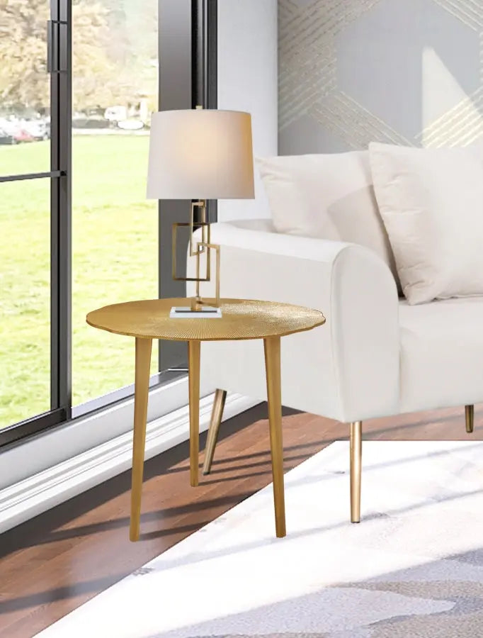 Líneas limpias y un diseño sobrio son el sello distintivo de esta mesa auxiliar Rohan. Esta moderna mesa es perfecta para darle un toque diferente a tu habitación contemporánea, con su acabado metálico texturizado en dorado intenso y su estilo sencillo. Fabricada en aluminio, la mesa ofrece una belleza duradera y un gran rendimiento en el estudio, la sala de estar o la sala familiar. Combínala con la mesa de centro a juego para lograr un ambiente cohesivo.