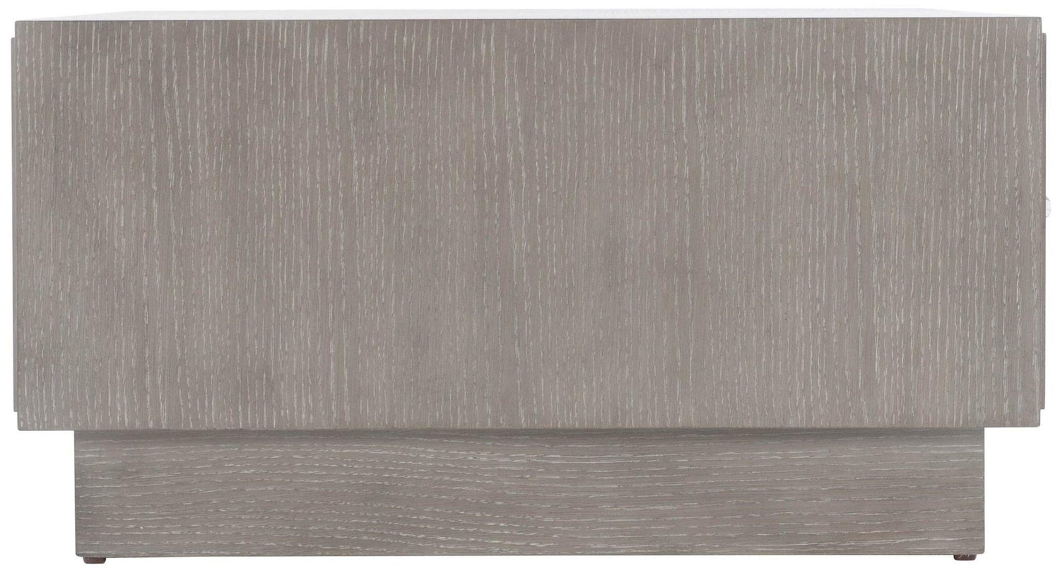 - Caja de mesa con acabado en Cerused Greige sobre chapas de roble cuarteadas