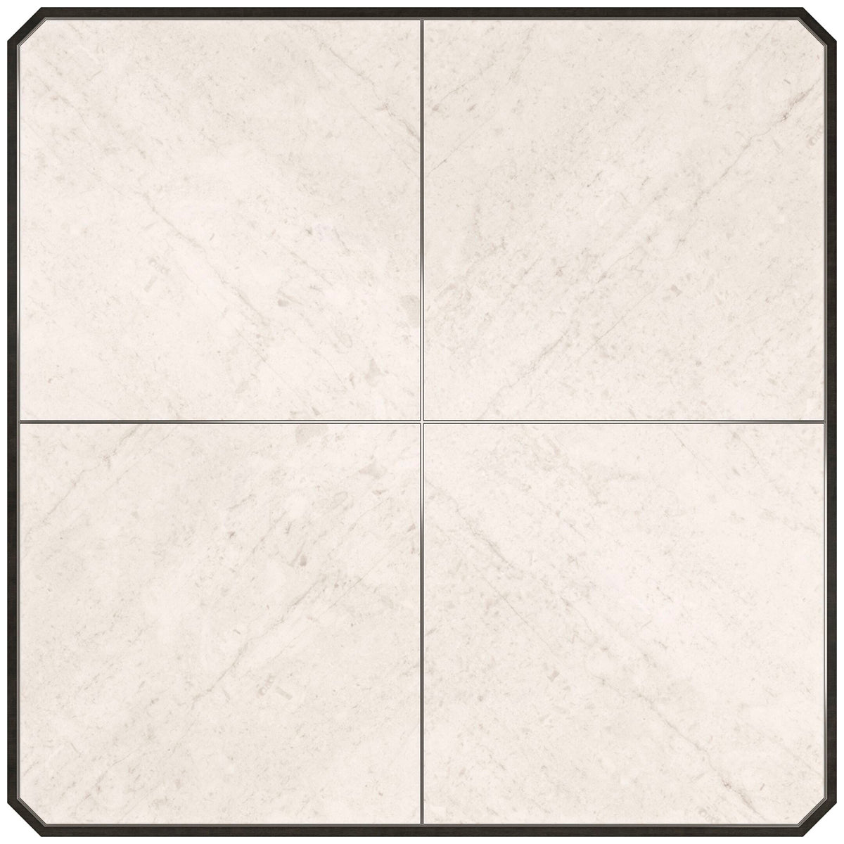 - Parte superior con 4 piezas de piedra travertino crema incrustada con detalles de metal en Majestic Gold