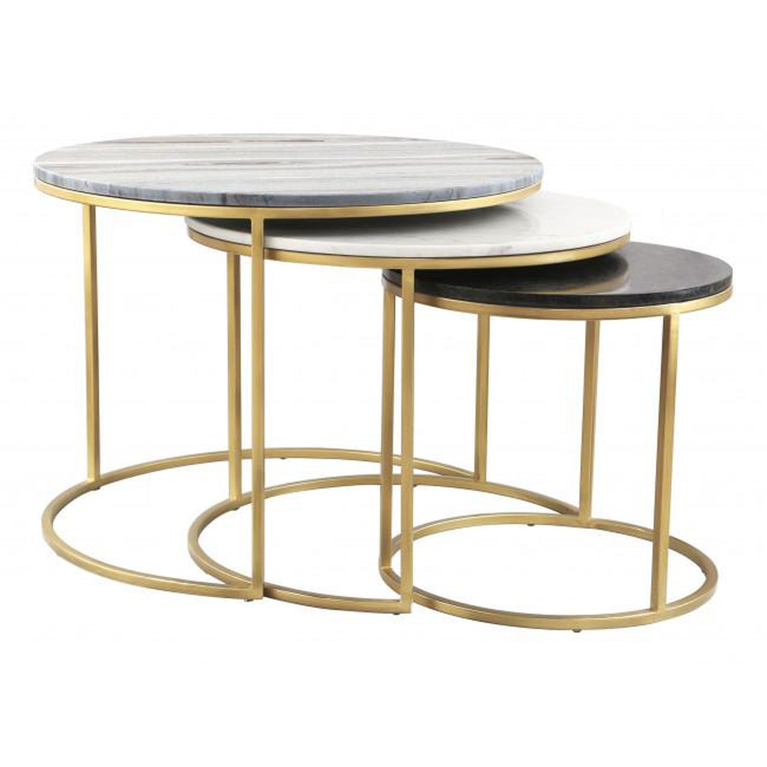 - Un estudio multiuso y multiformato de glamour y decoración, las mesas de centro nido Franco están hechas con tapas de mármol con bases de acero pintado.
