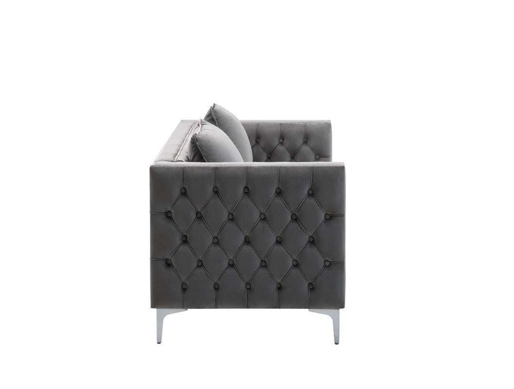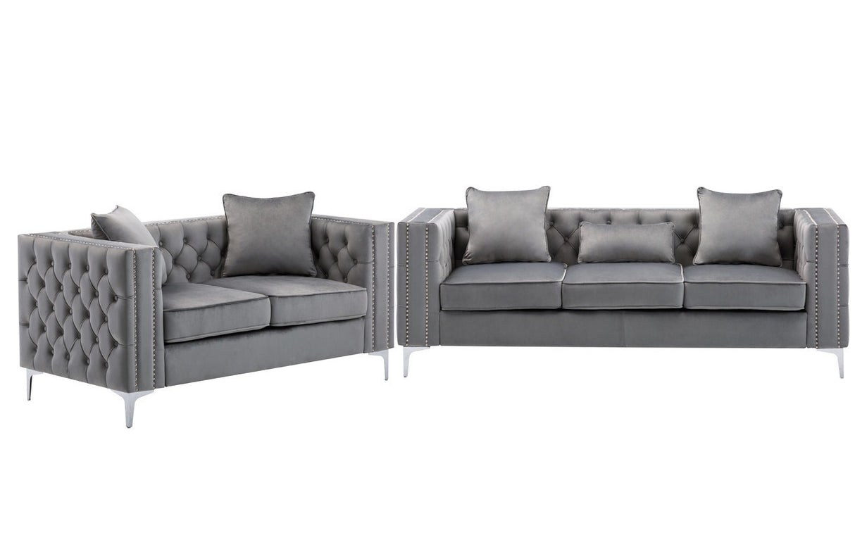 Conjunto de sala de estar con sofá de dos plazas de tela de terciopelo gris Lorreto