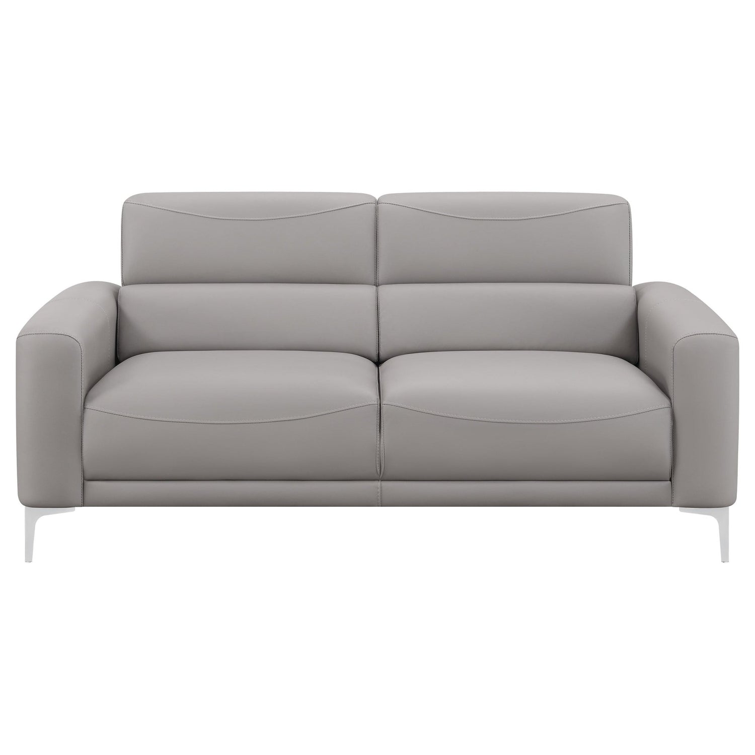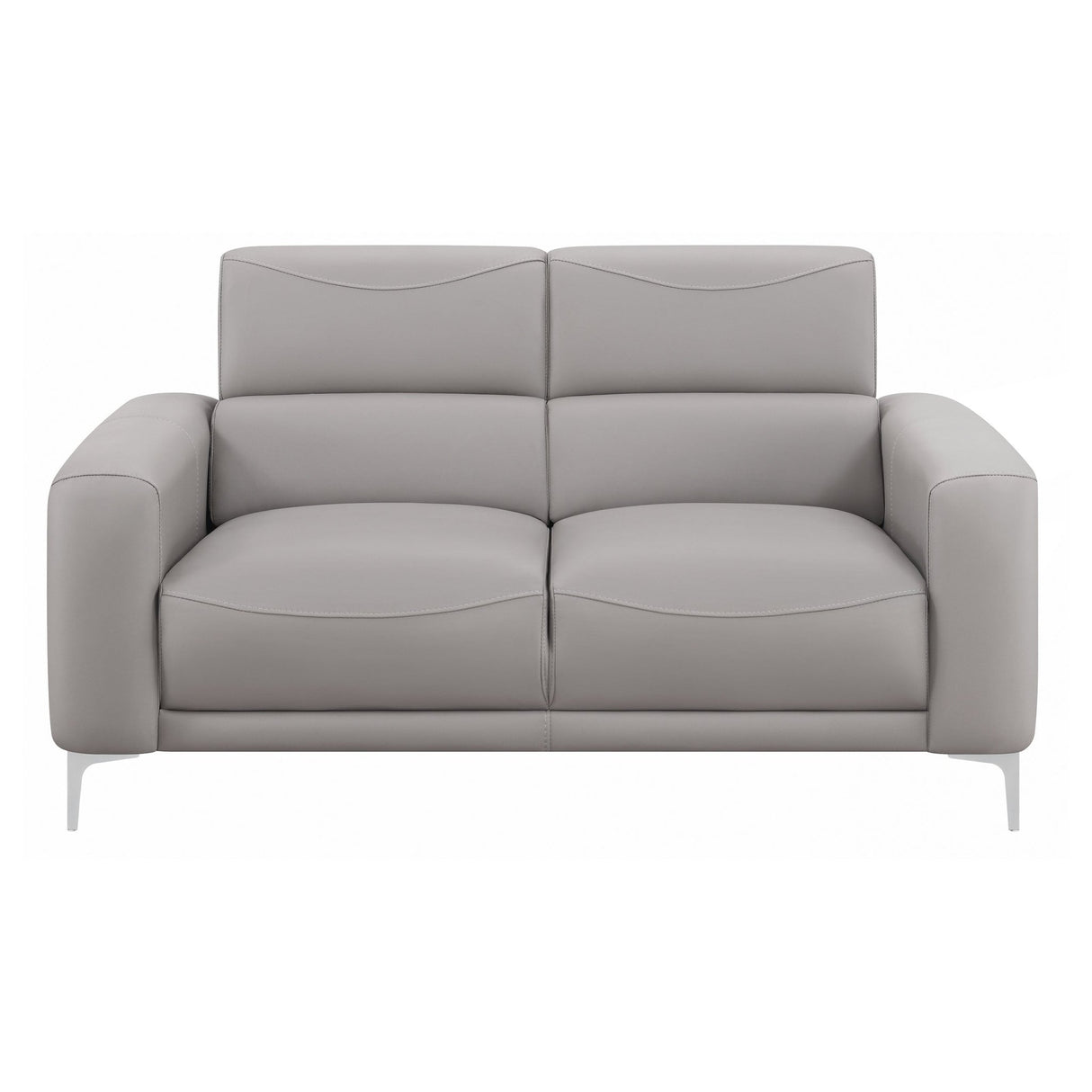 • Esta colección de tapicería de cuero sintético color topo suave, con sus líneas limpias y curvas suaves y sutiles, complementará cualquier entorno moderno.