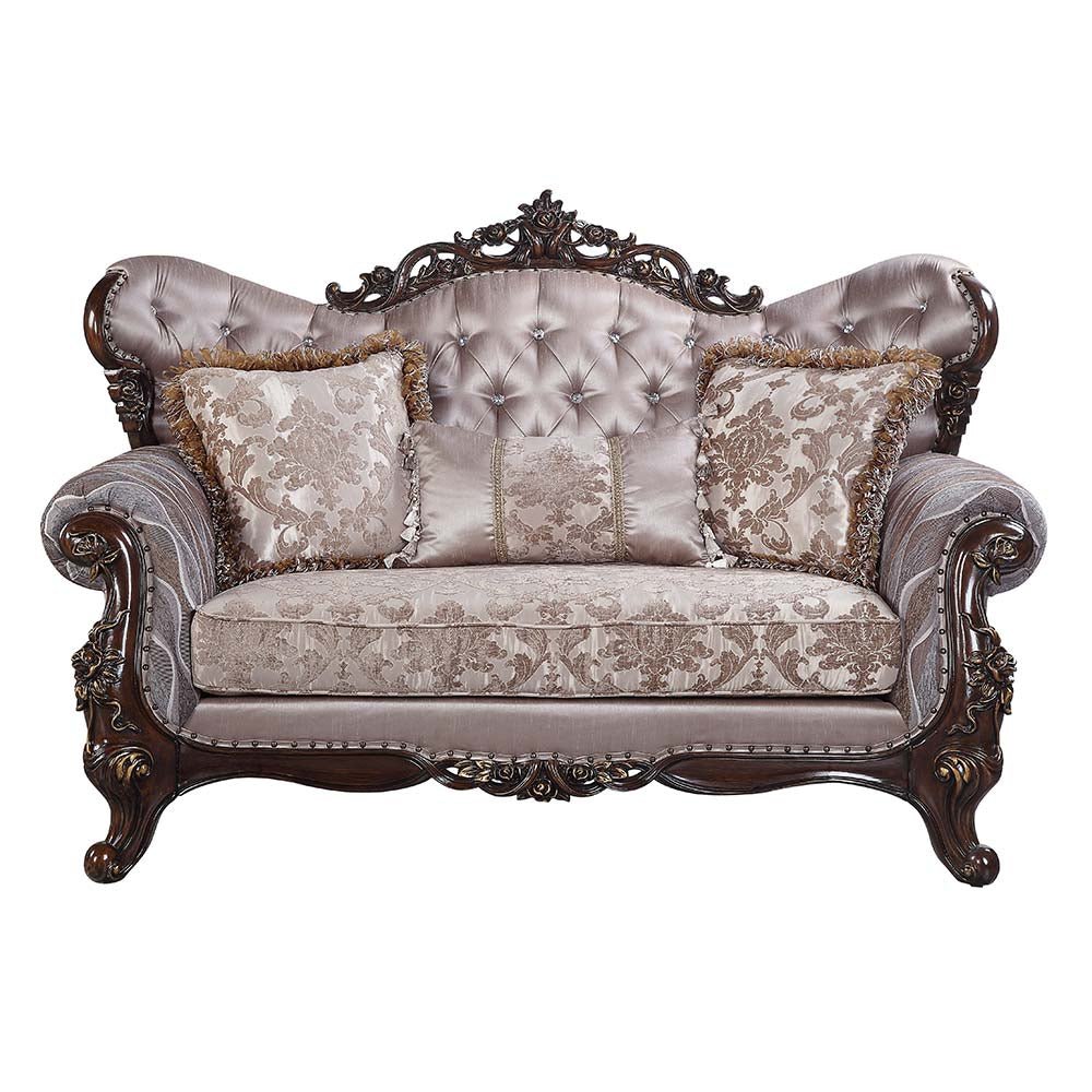 Acme - Sofá de dos plazas Benbek con 3 cojines LV00810, tela y acabado roble antiguo