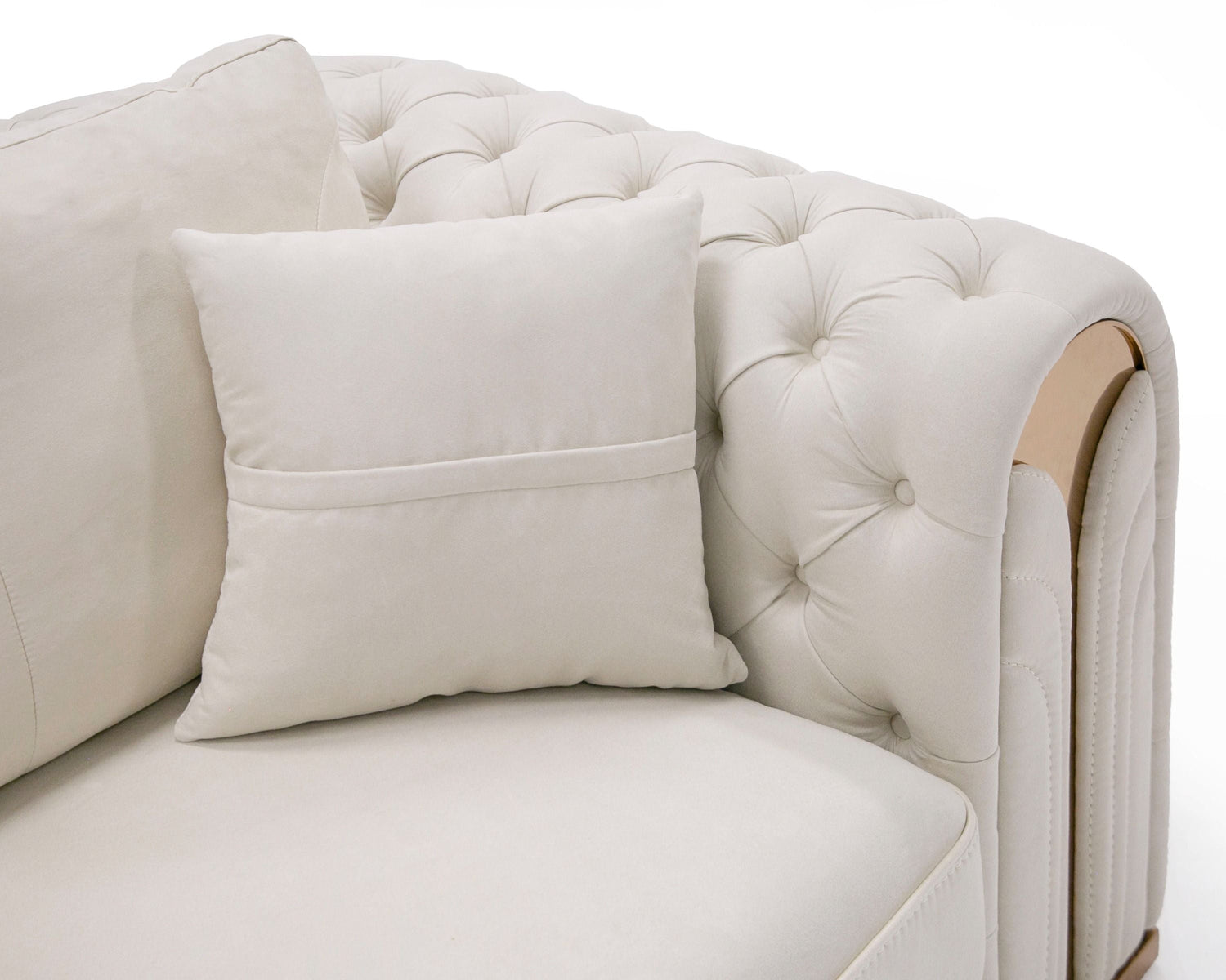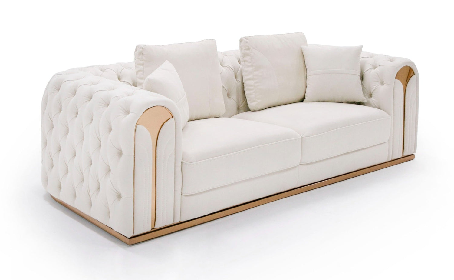 El conjunto de sofá y loveseat Divani Casa Dosie Transitional de terciopelo beige es un conjunto sofisticado que combina comodidad y elegancia. Tapizado en una lujosa tela de terciopelo beige. Las patas y detalles de acero inoxidable dorado añaden un toque de opulencia, mientras que los brazos y el respaldo capitoné con botones le dan un aspecto clásico. La estructura de madera de eucalipto, el relleno de espuma y la construcción sinuosa del asiento con resortes garantizan durabilidad y comodidad. Ya sea para recibir invitados o para relajarse, este conjunto de sofás irradia un encanto y un estilo atemporales.