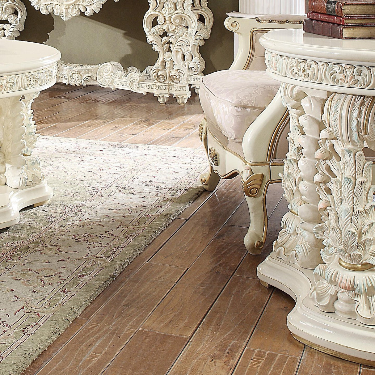 Este juego de mesa de centro, elaborado y decorado, realzará el estilo sofisticado de su sala de estar formal. Sus elegantes curvas añaden un toque de elegancia al lujoso estilo de la pieza. Diseñada con elegancia para el hogar tradicional, esta Colección Regal combina con maestría toques clásicos para crear una colección de asientos perfecta para su sala de estar. Las tallas tienen un acabado blanco brillante y ribetes dorados que le dan un toque de elegancia. Consiga un estilo majestuoso y verdaderamente decadente en su hogar con los impresionantes diseños europeos de esta colección tradicional de Homey Design Furniture.