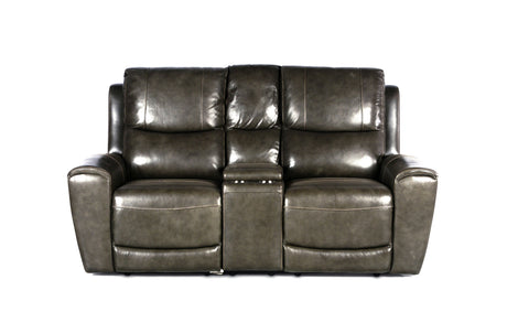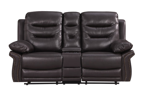 Sofá de dos plazas reclinable con consola, tapizado en cuero y respaldo de fibra, de Global United