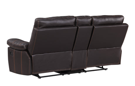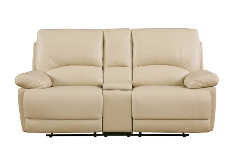 Sofá de dos plazas reclinable con consola, tapizado en cuero y respaldo de fibra, de Global United