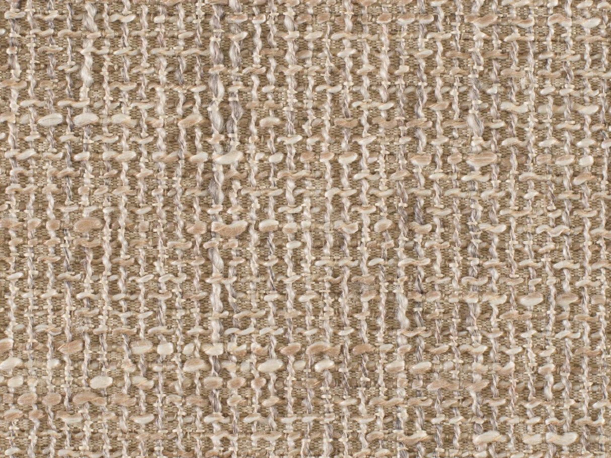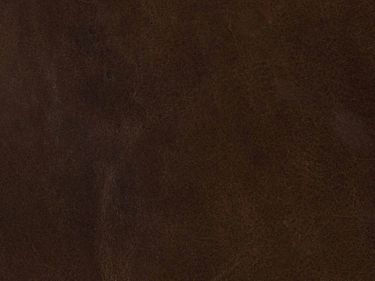 - El asiento está tapizado en cuero de grano superior de anilina, y el respaldo es de una tela tejida de color desierto, y ambos están acentuados con detalles de tachuelas de bronce.