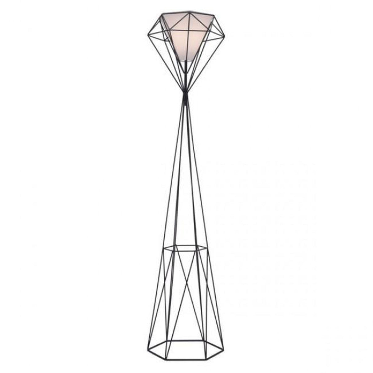 - Una inclinación arquitectónica le da a esta lámpara de pie un lugar en cualquier hogar bien diseñado.