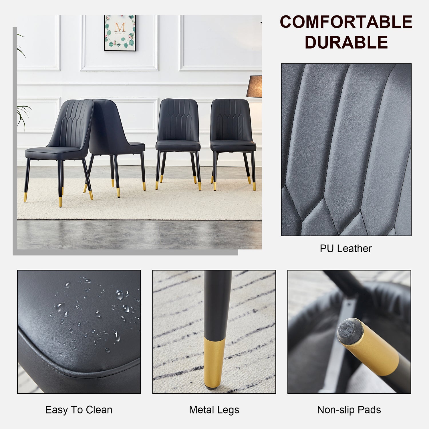 - La silla de comedor de diseño moderno con una silueta elegantemente curva y un cojín de asiento grueso proporciona a la silla la máxima comodidad. El cuero PU de buena calidad y un asiento acolchado suave realmente se sienten suaves cuando te sientas en él.
