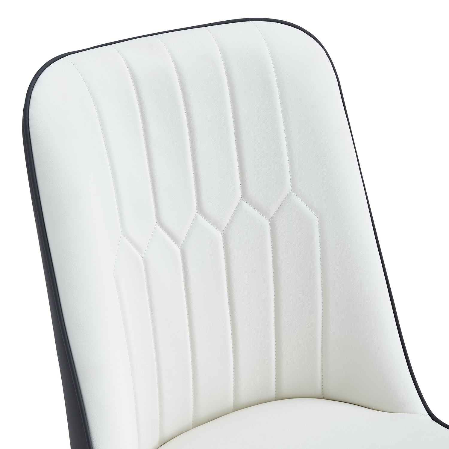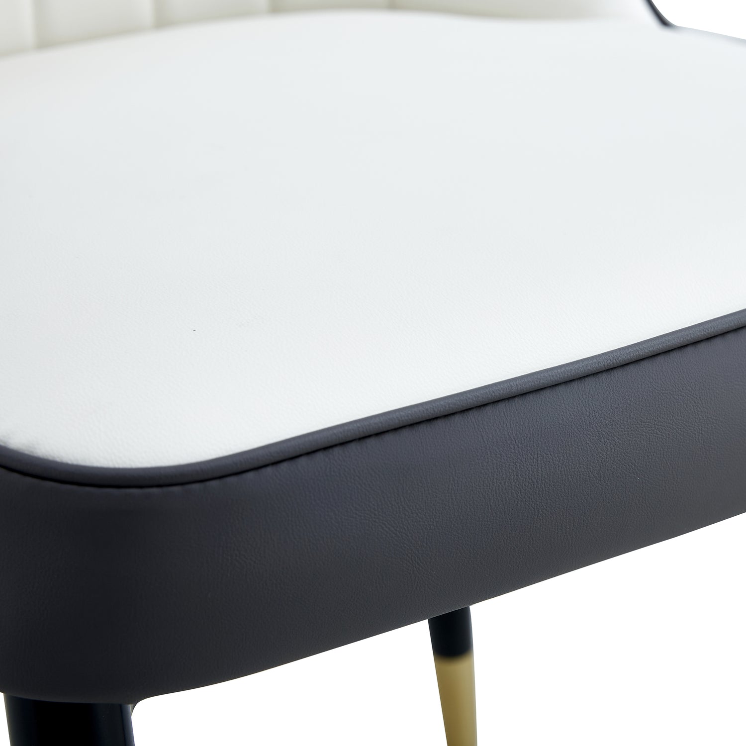 - Las sillas que acompañan están diseñadas en colores empalmados blanco y gris oscuro, con patas de silla de metal negro, simples pero lujosas. Las sillas están rellenas de esponja para una experiencia de asiento suave y cómoda. Las sillas están diseñadas de acuerdo con la ergonomía, proporcionando una postura para sentarse más cómoda, con diseños de líneas simples en el respaldo.