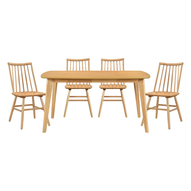 Juego de comedor informal de 5 piezas con acabado en roble natural y 4 sillas laterales, respaldo curvo, muebles de cocina de madera Windsor.
