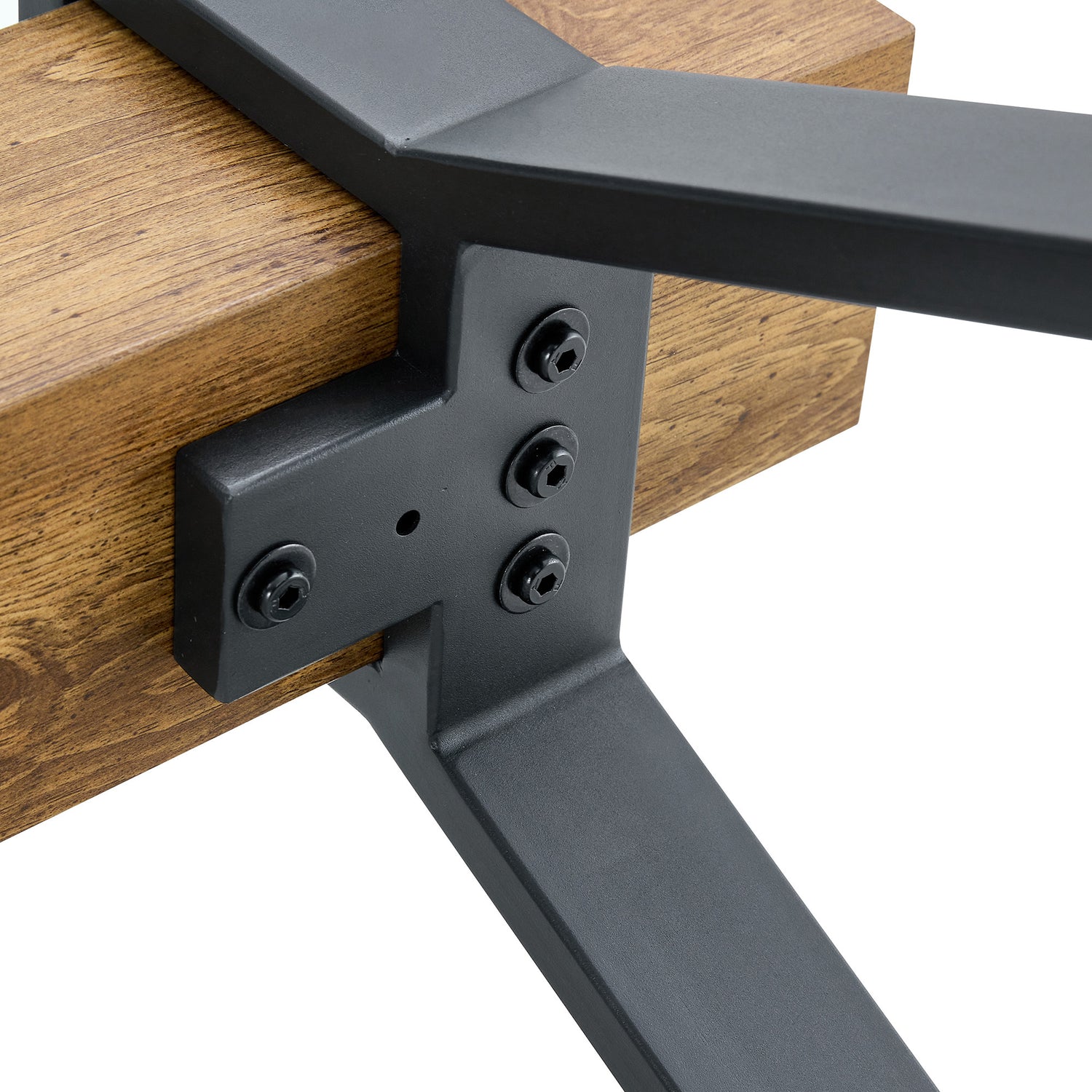 • Patas de metal negro en forma de X: Dos patas de metal en forma de X con una viga transversal de MDF en el medio, cubiertas con pegatinas de vetas de madera, que agregan un soporte estable. Protección de pies antideslizante: Las patas están equipadas con pies antideslizantes, que protegen el piso y al mismo tiempo garantizan la estabilidad de la mesa del comedor.