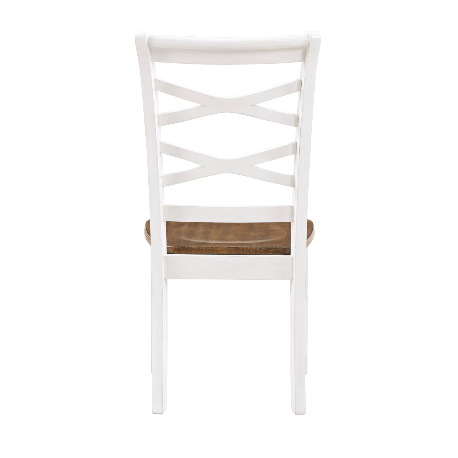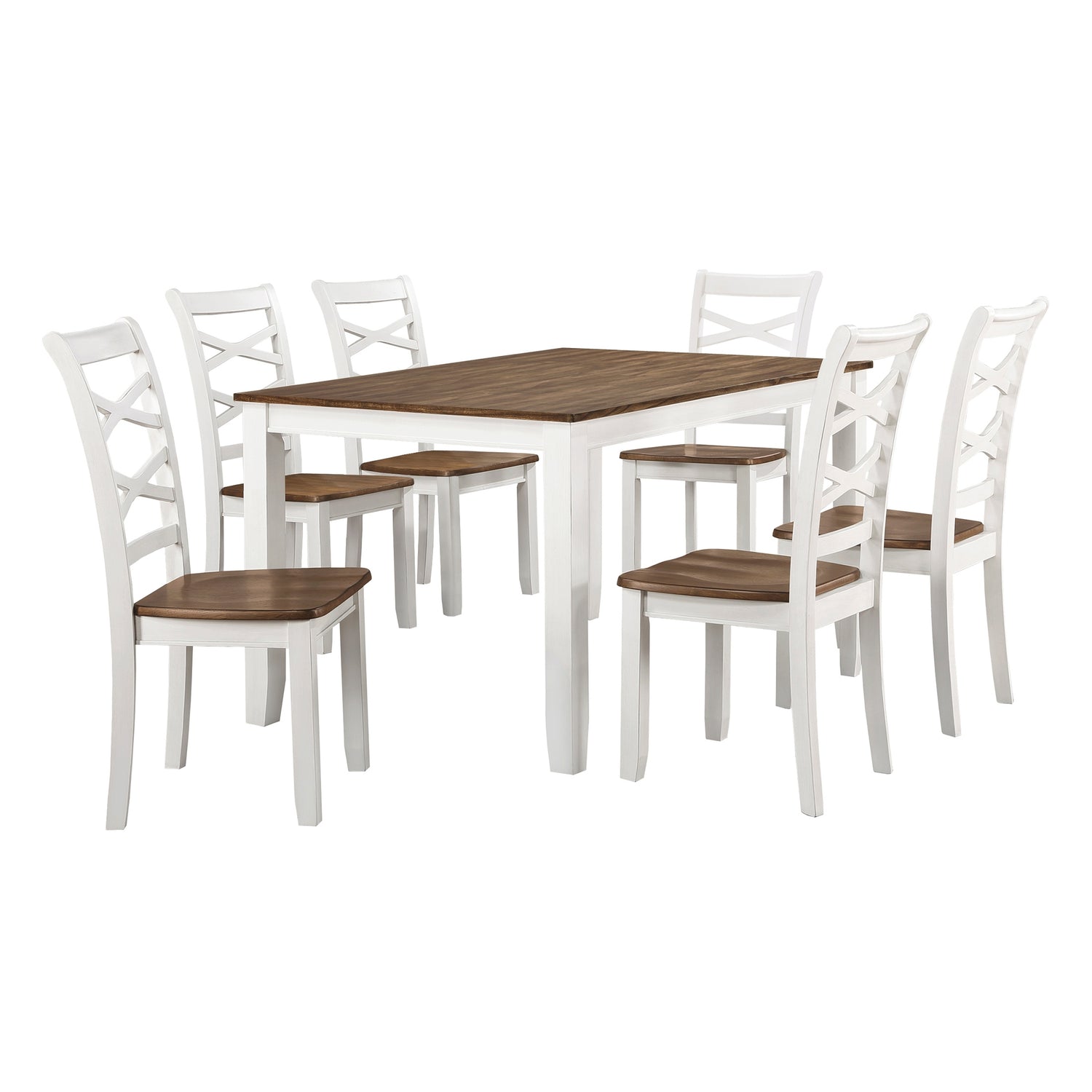 Juego de comedor de 7 piezas con acabado en cerezo y blanco, mesa y 6 sillas laterales, diseño de doble X, muebles de comedor de estilo rústico informal de madera.