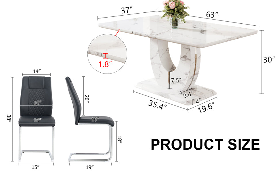 • Tablero grueso: un tablero de 1,8 pulgadas de espesor con bordes lisos proporciona alta seguridad y durabilidad.Tamaño de mesa espacioso: la mesa del comedor mide 63'x37'x30', adecuada para comidas familiares y pequeñas reuniones.