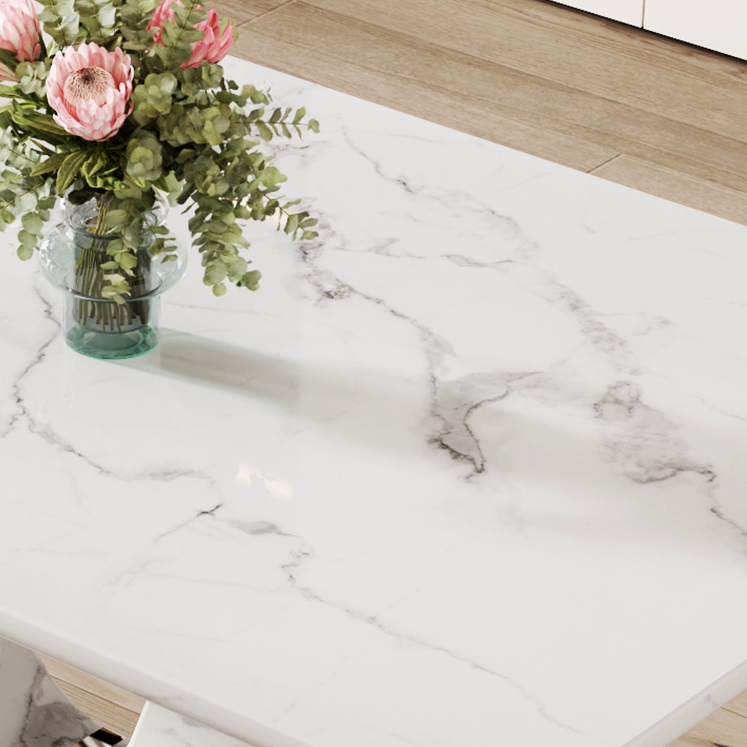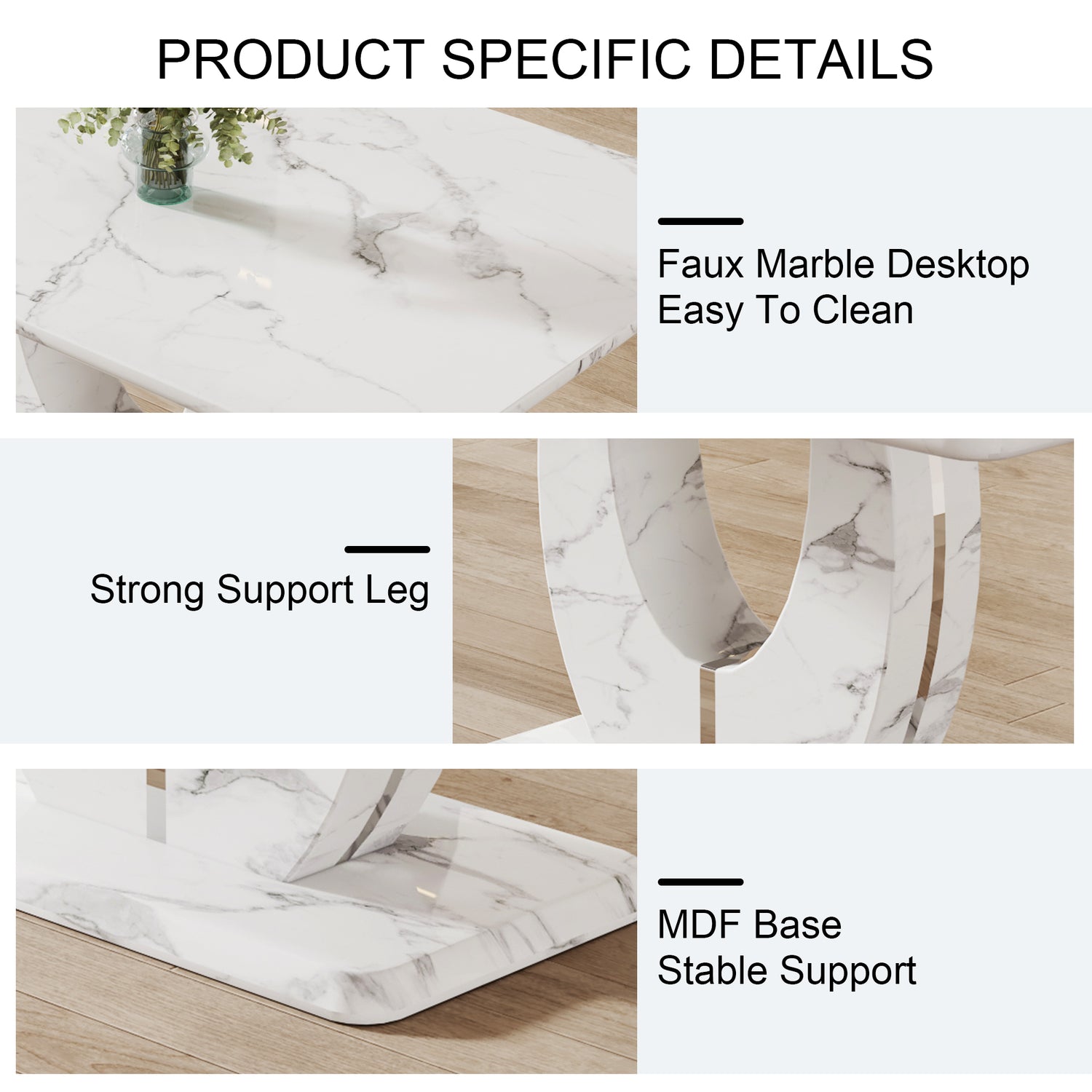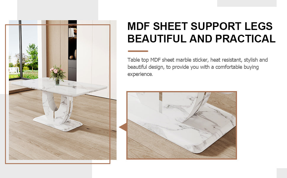 • Exquisito patrón de mármol: la mesa de comedor presenta una construcción de MDF con una pegatina con patrón de mármol texturizado blanco, que muestra un temperamento elegante.