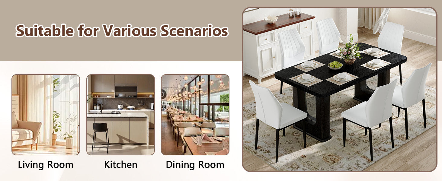 - Esta mesa de comedor es una opción elegante para el hogar moderno. Está fabricada con tableros de alta densidad de alta calidad. Tras un exquisito proceso de pegado, presenta un efecto de textura realista. El diseño de la mesa de comedor cuida cada detalle para brindarte la mejor experiencia gastronómica. Elige esta mesa de comedor y tu vida será más plena.