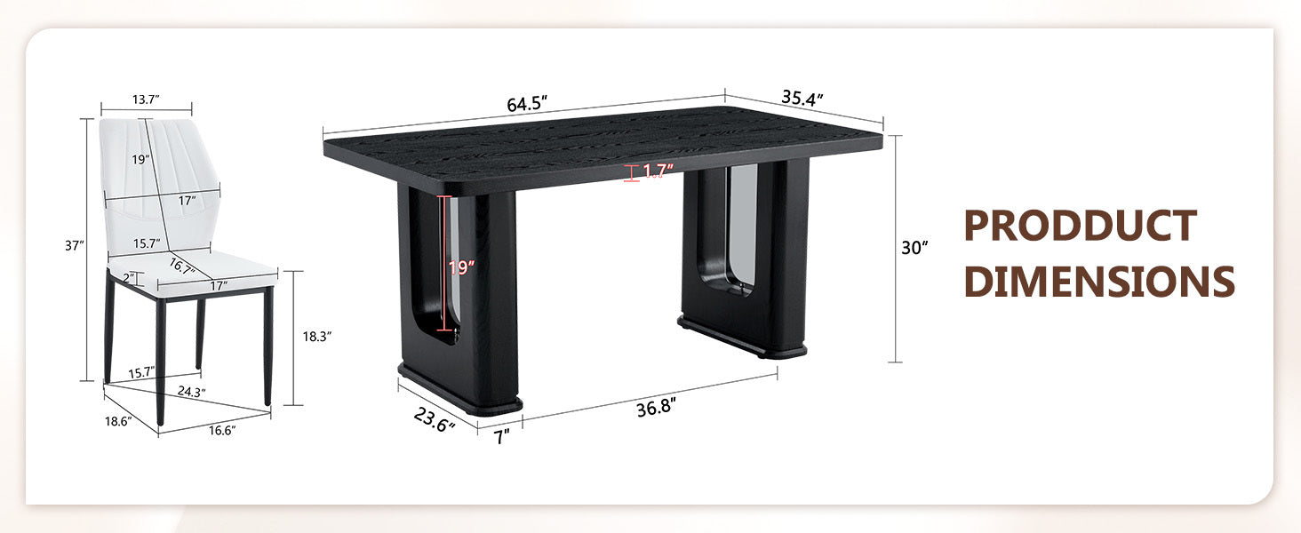- Dimensiones generales: La mesa de comedor mide 164,5 cm de largo, 89,5 cm de ancho y 76,2 cm de alto. Su amplio tablero puede acomodar fácilmente a varias personas, ideal para reuniones familiares o con amigos. Material de escritorio exquisito: El escritorio está hecho de MDF con pegatinas de textura realista, presentando una textura natural y cálida. Tiene un grosor de 4,3 cm, es resistente, duradero y fácil de limpiar.