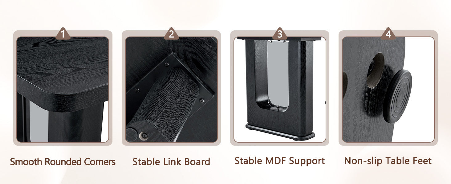 - Diseño único de patas de mesa: La parte hueca entre las dos patas en forma de U está incrustada con vidrio gris transparente de 48 cm de alto. Además de aportar transparencia, el vidrio gris y la textura de madera negra se complementan, creando una atmósfera única y elegante, visualmente más compleja.