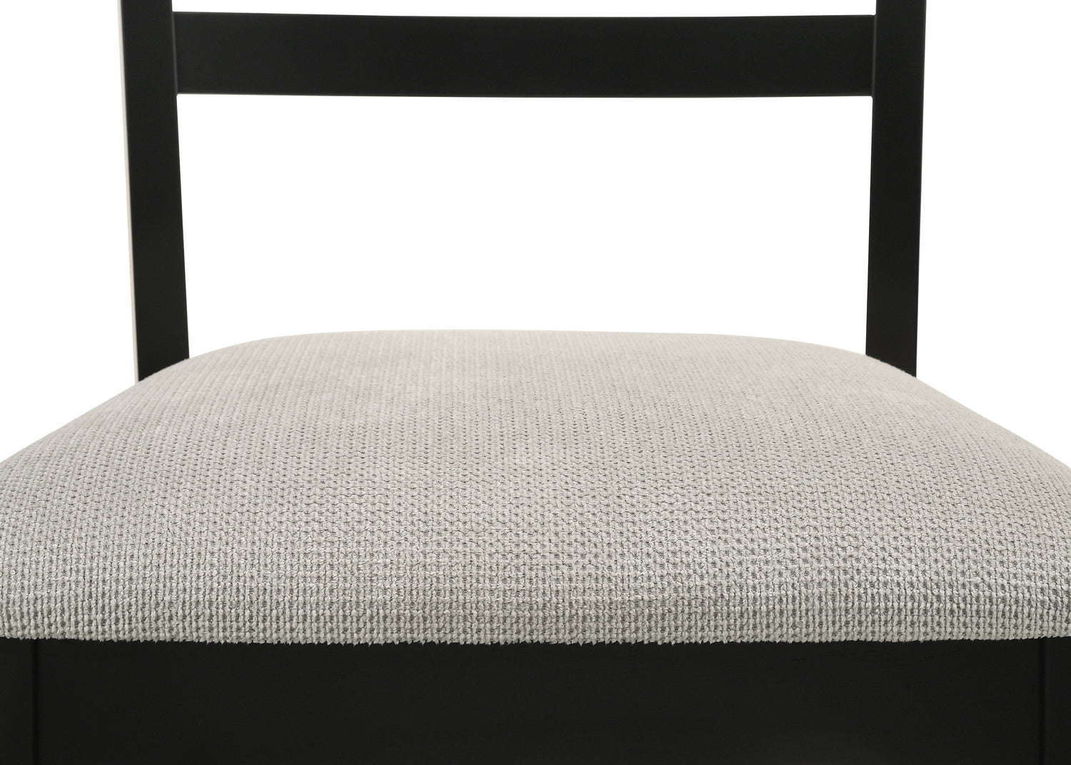 Juego de comedor contemporáneo de 5 piezas con mesa rectangular, base de madera en dos tonos, respaldo de escalera, sillas tapizadas, acabado en gris negro, muebles de comedor de madera