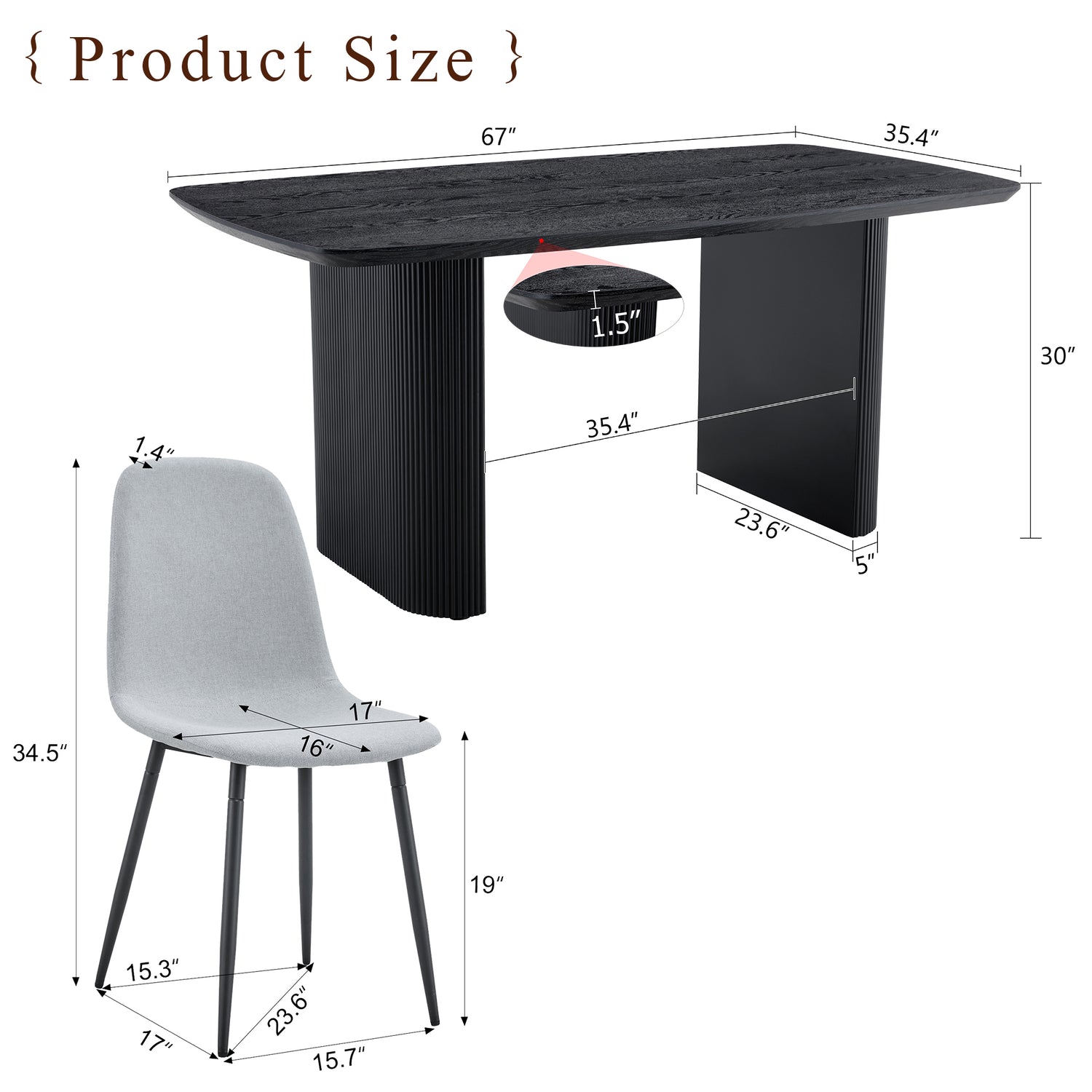 Juego de mesa y sillas. Mesa de comedor de MDF con veta de madera negra de 67 x 35,4 pulgadas: una opción simple, lujosa y estable. Combina con 8 sillas de comedor de alta resiliencia de material de lino y algodón gris claro con patas de metal.