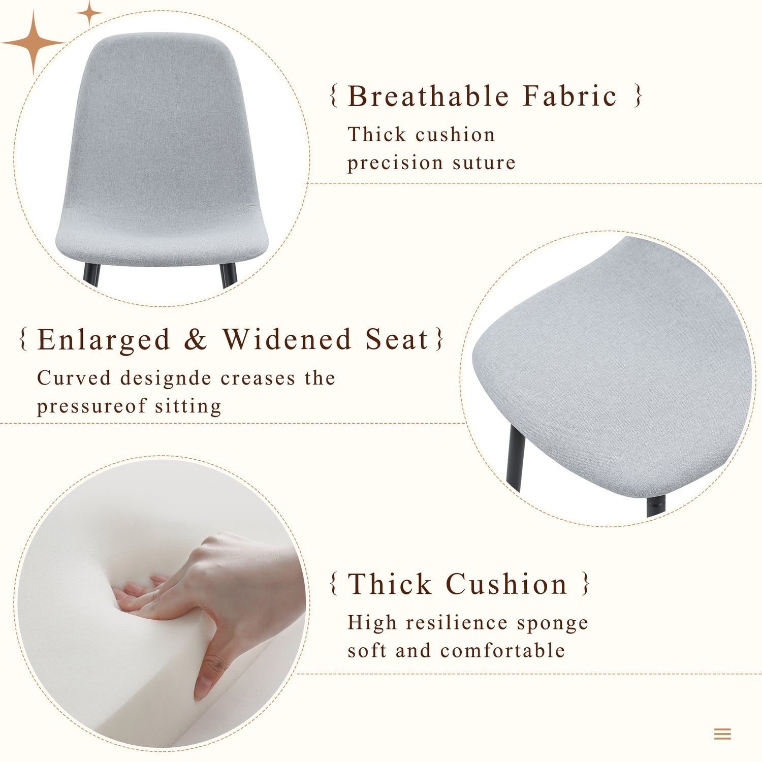 - Material de lino y algodón: Las sillas están hechas de lino y algodón gris claro, naturalmente transpirable, que ofrece una excelente comodidad. Fácil de limpiar: El material de lino y algodón es fácil de limpiar y mantener, manteniendo las sillas frescas y nuevas.