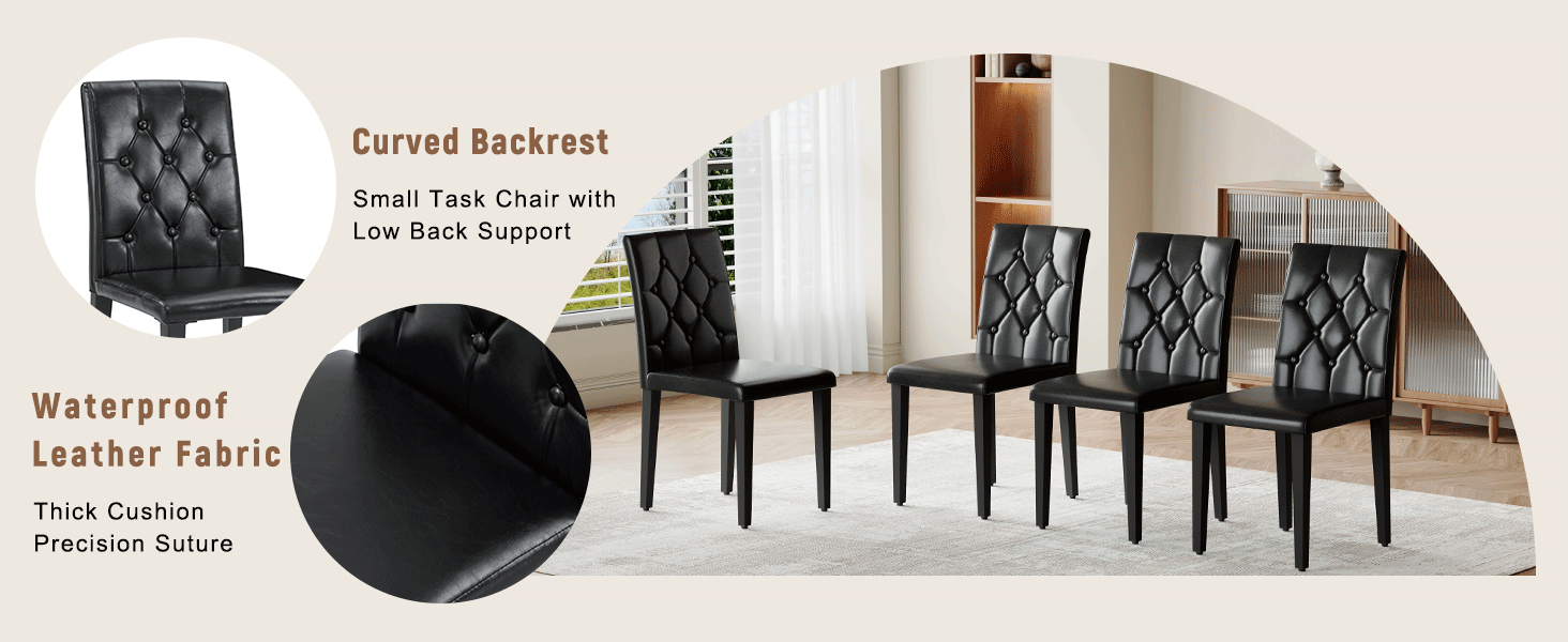 - Material de PU de alta calidad: El respaldo y el cojín del asiento están hechos de PU, que no solo tiene una apariencia delicada, sino que también es muy fácil de limpiar. Simplemente límpielo con un paño húmedo y detergente suave para mantener la silla de comedor como nueva.