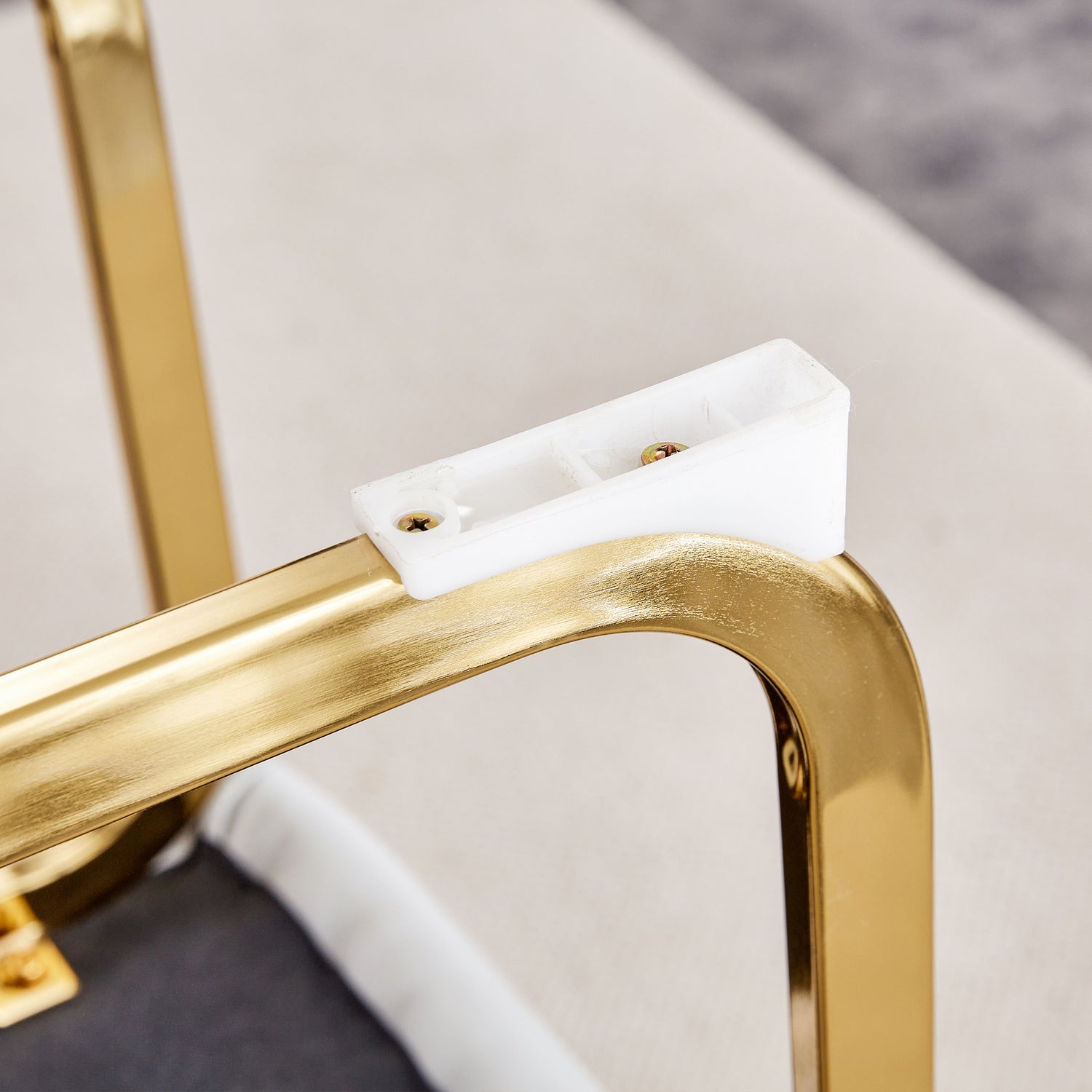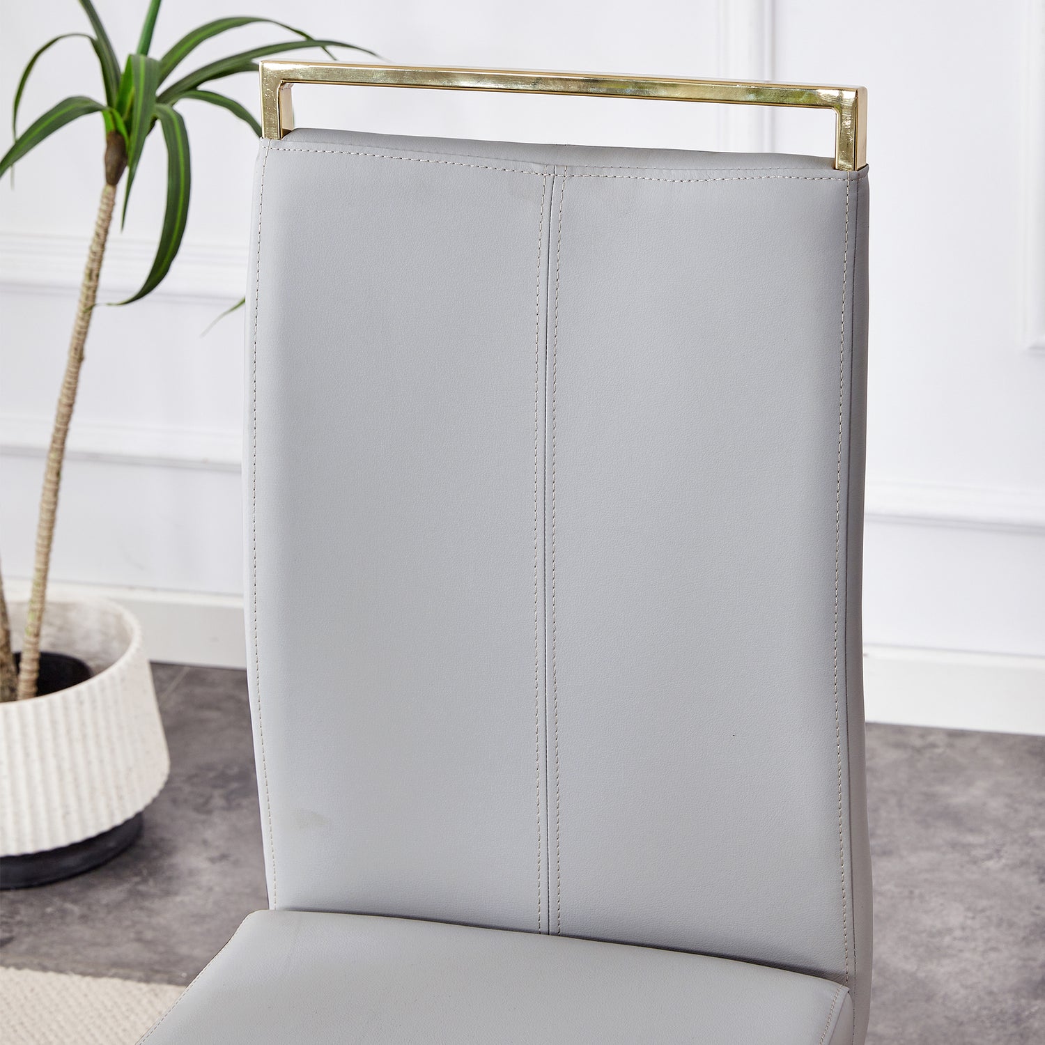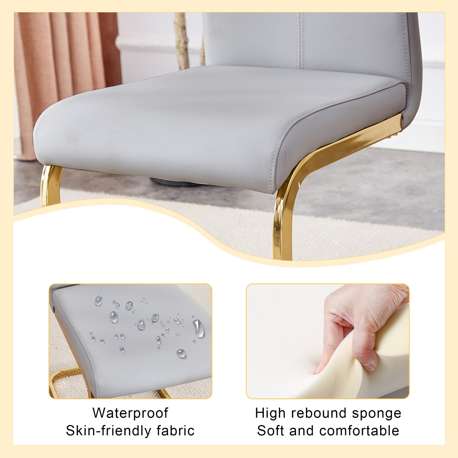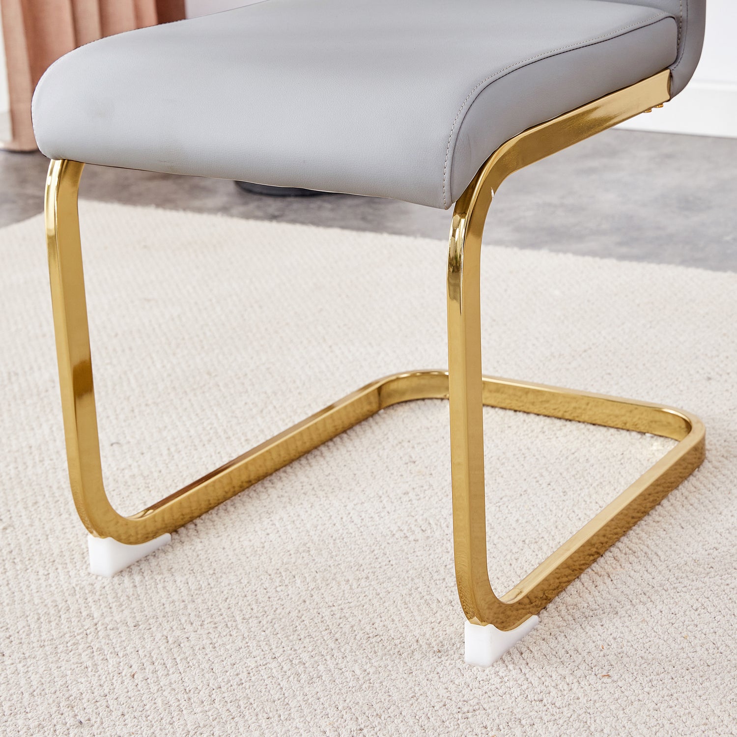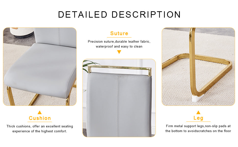 • Patas de metal arqueadas estables: las patas de metal arqueadas doradas no solo agregan una sensación de diseño, sino que también brindan un soporte fuerte, lo que garantiza la estabilidad y durabilidad de la silla. Manteniendo la seguridad del asiento durante el uso. Pies protectores antideslizantes: el diseño de pies antideslizantes en la parte inferior de las patas de la silla protege el piso de rayones y aumenta la seguridad de la silla durante su uso.