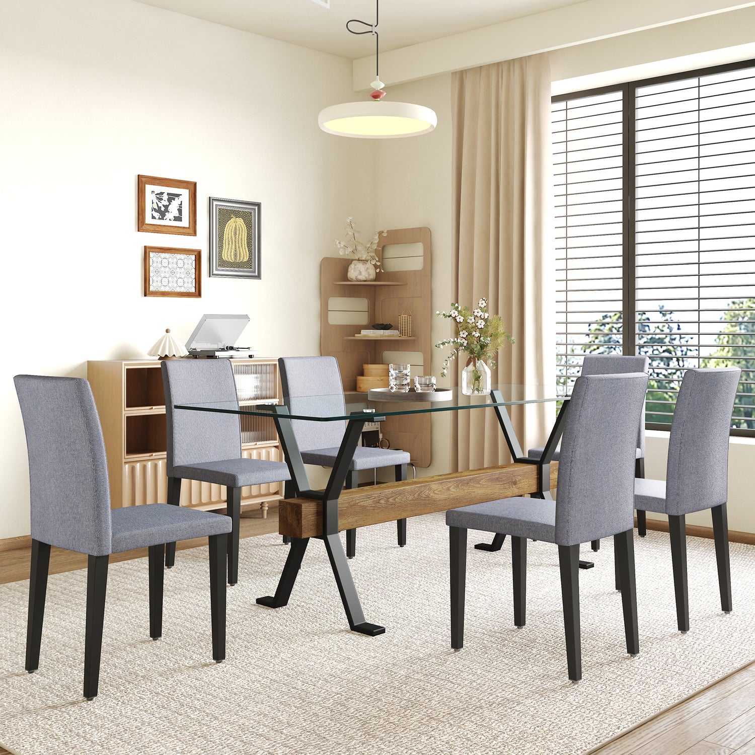 - Atmósfera minimalista: el diseño general se centra en la simplicidad, con la mesa transparente que crea un ambiente de comedor discreto y elegante. El espacioso tamaño de la mesa es adecuado para diversas comidas familiares y reuniones sociales.