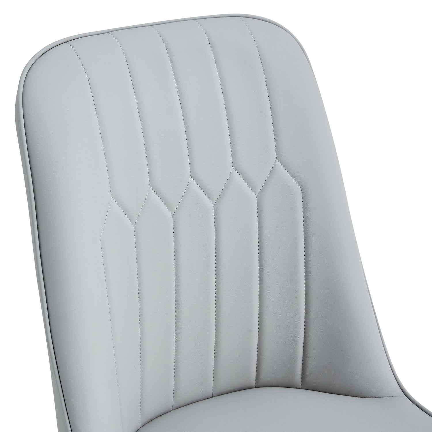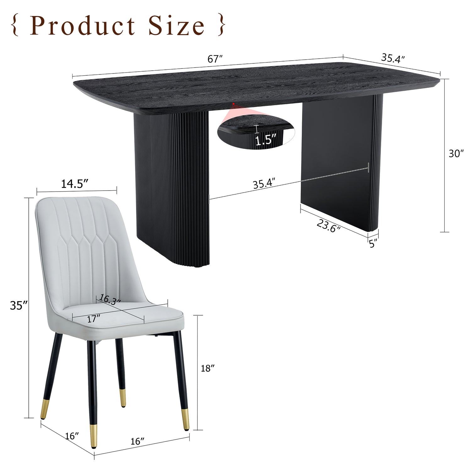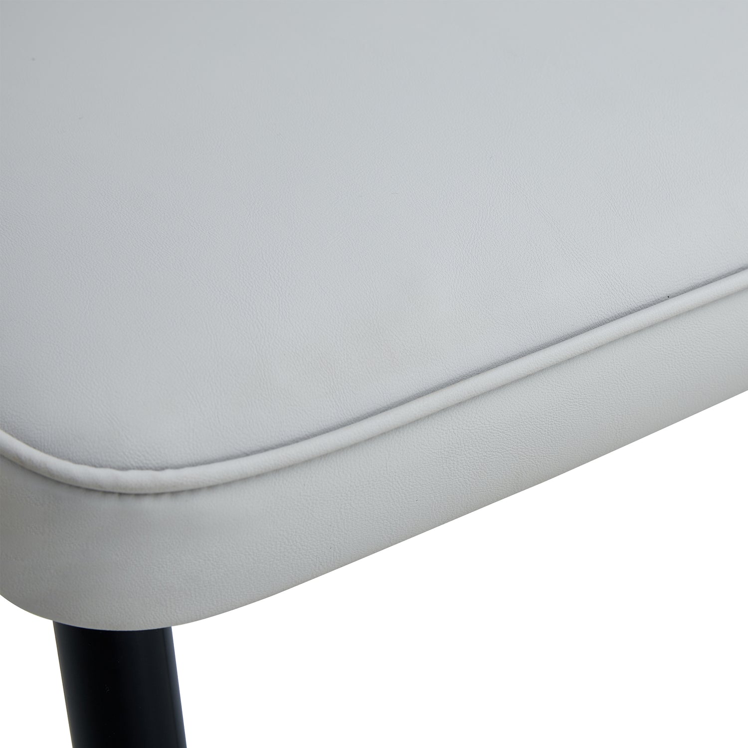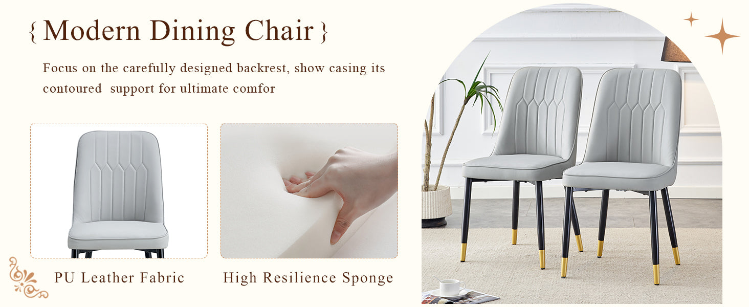 - Sillas de PU sin brazos: las sillas de comedor están hechas de material de PU de alta calidad con un diseño sin reposabrazos, simple pero elegante, y el patrón de rayas verticales en el respaldo agrega comodidad adicional para los usuarios. Patas de silla de metal: cada silla está equipada con patas de metal negro, que se hacen eco de las patas de la mesa, creando una apariencia armoniosa con un color y material unificados.