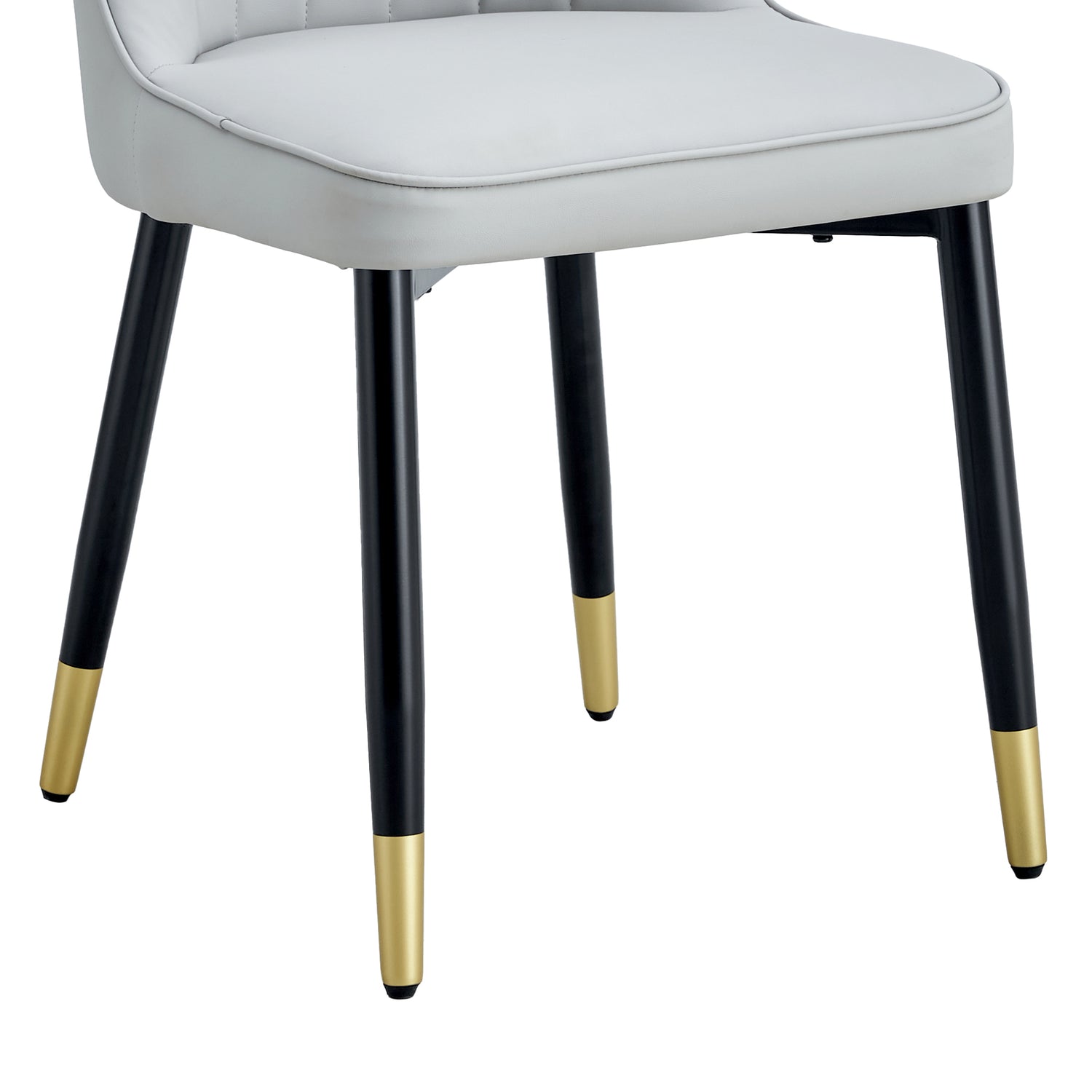 - Decoración en aerosol dorado: la parte inferior de las patas de la silla cerca del suelo está decorada con aerosol dorado, lo que agrega un toque de lujo al diseño.Patas de piso antideslizantes: teniendo en cuenta la seguridad y la estabilidad de uso, la parte inferior de las patas de la silla está especialmente equipada con patas de piso antideslizantes, protegiendo el piso y asegurando la estabilidad de las sillas de comedor durante el uso.