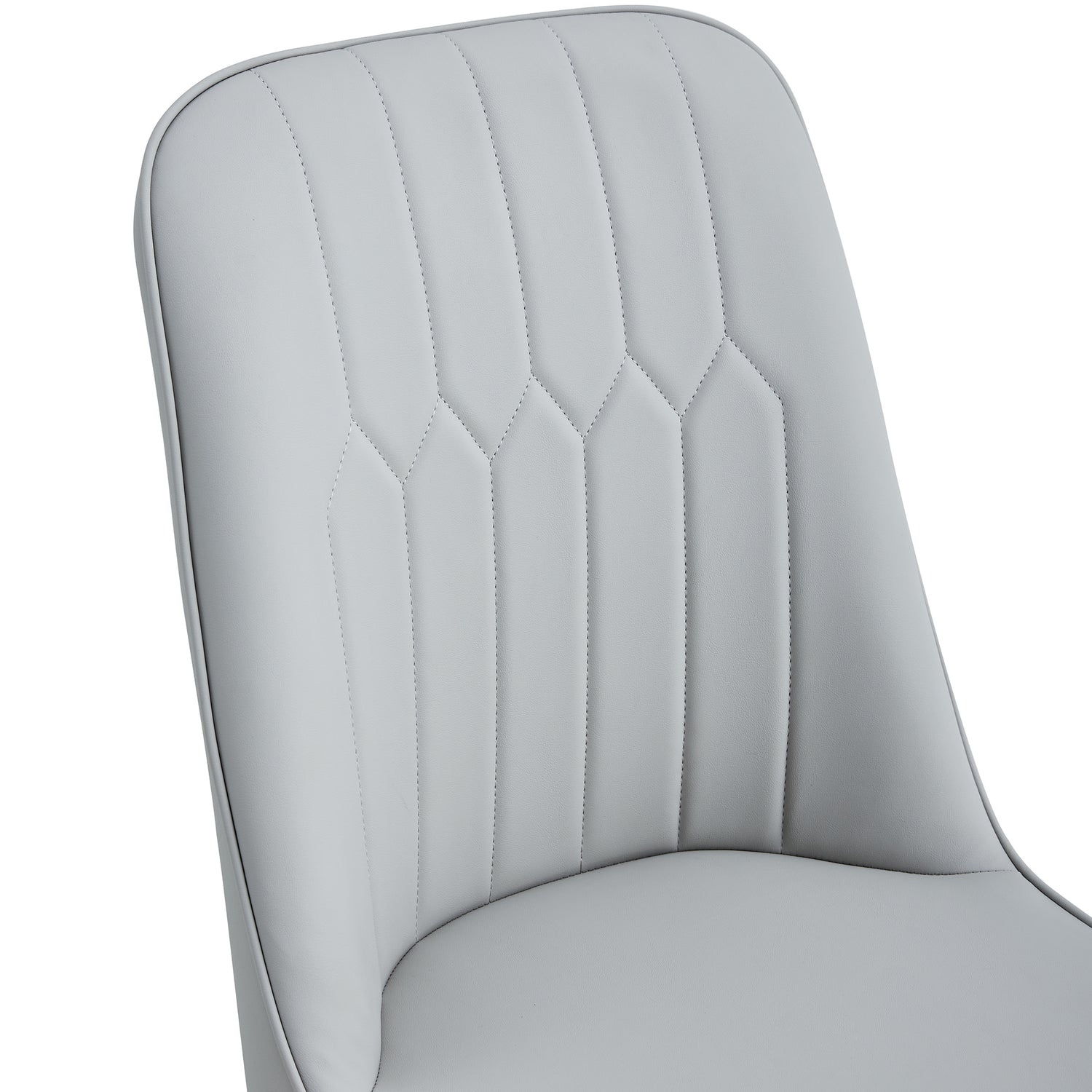 - Sillas de PU sin brazos: Las cuatro sillas de comedor están hechas de material de PU de alta calidad con un diseño sin reposabrazos, simple pero elegante, y el patrón de rayas verticales en el respaldo agrega comodidad adicional para los usuarios. Patas de silla de metal: Cada silla está equipada con patas de metal negro, que se hacen eco de las patas de la mesa, creando una apariencia armoniosa con un color y material unificados.