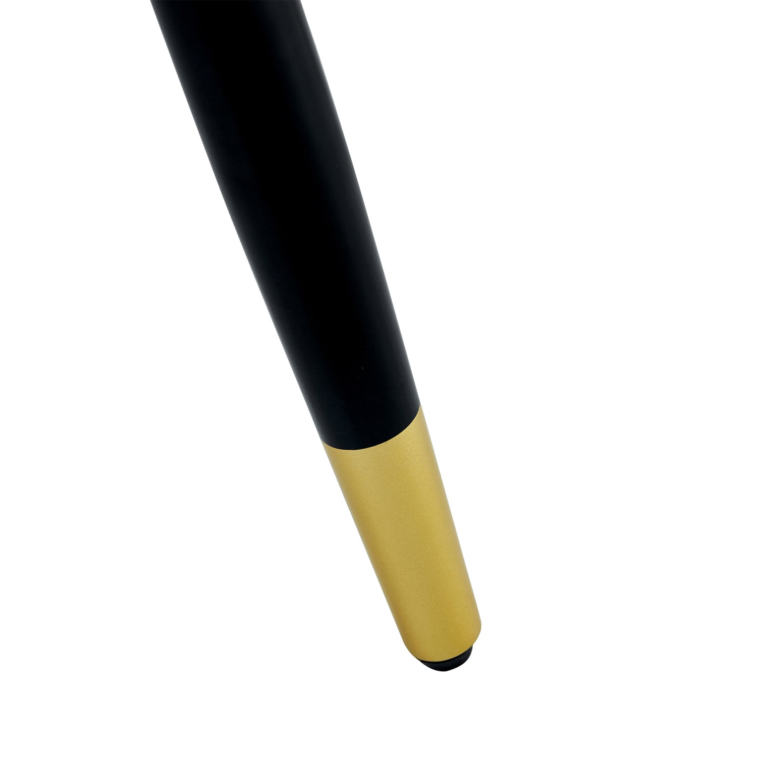 - Decoración en aerosol dorado: la parte inferior de las patas de la silla cerca del suelo está decorada con aerosol dorado, lo que agrega un toque de lujo al diseño.Patas de piso antideslizantes: teniendo en cuenta la seguridad y la estabilidad de uso, la parte inferior de las patas de la silla está especialmente equipada con patas de piso antideslizantes, protegiendo el piso y asegurando la estabilidad de las sillas de comedor durante el uso.