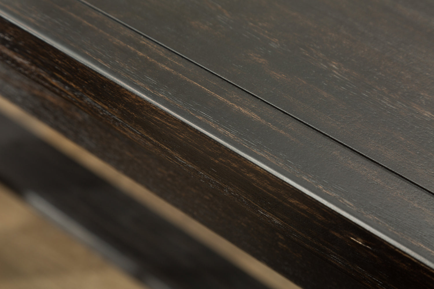 - La mesa está fabricada con chapa y madera maciza selectas con un acabado envejecido vintage y seco. Estilo elegante y contemporáneo, elegante forma rectangular con reposapiés.