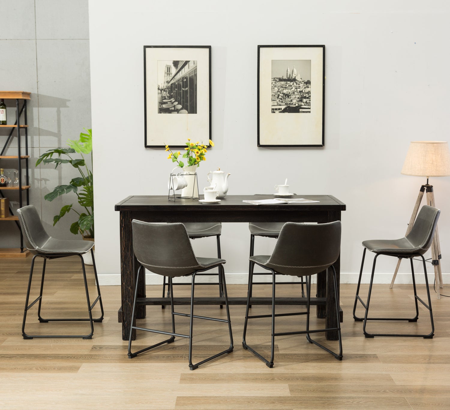 Juego de comedor Bronco de altura de mostrador con acabado en madera antigua: mesa y seis sillas grises