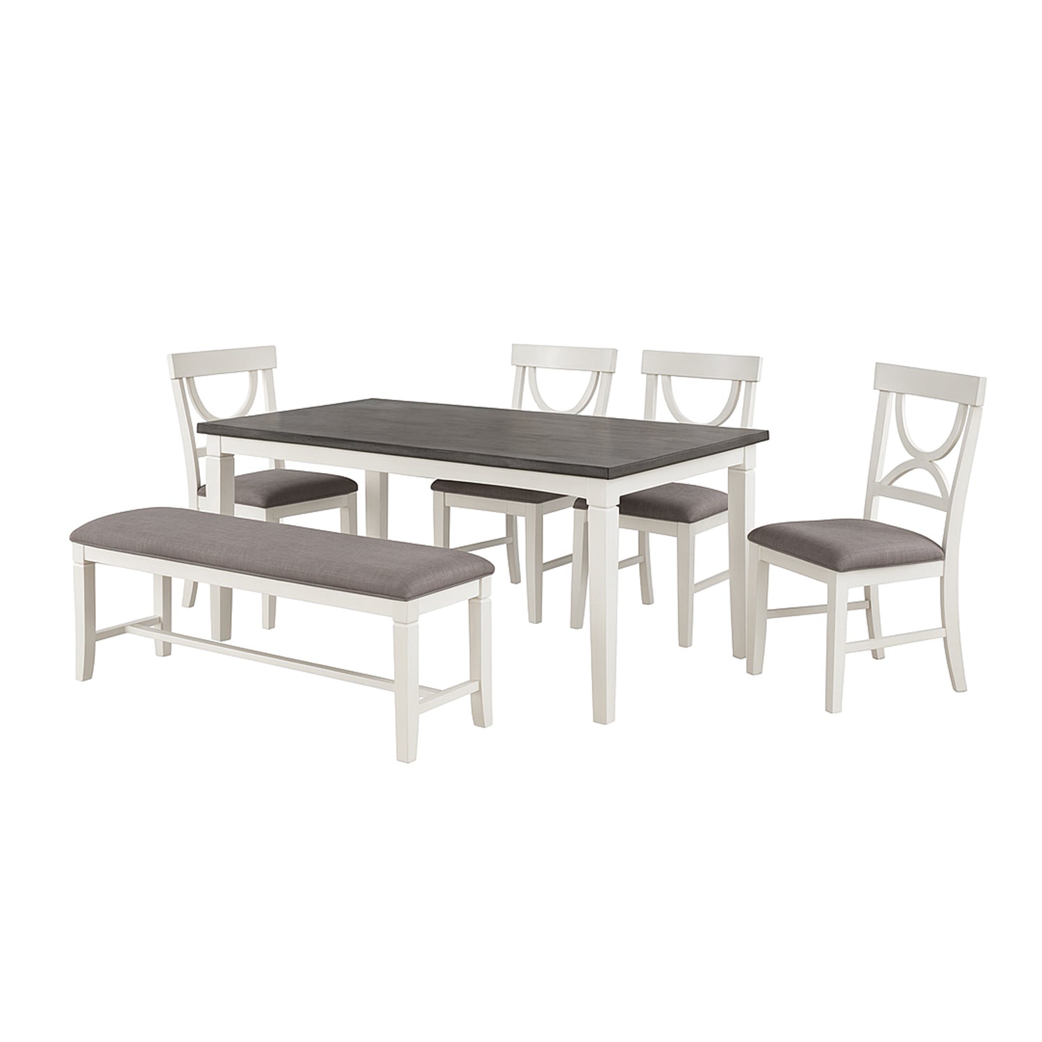 Juego de comedor Carrol de 6 piezas de madera, blanco y gris