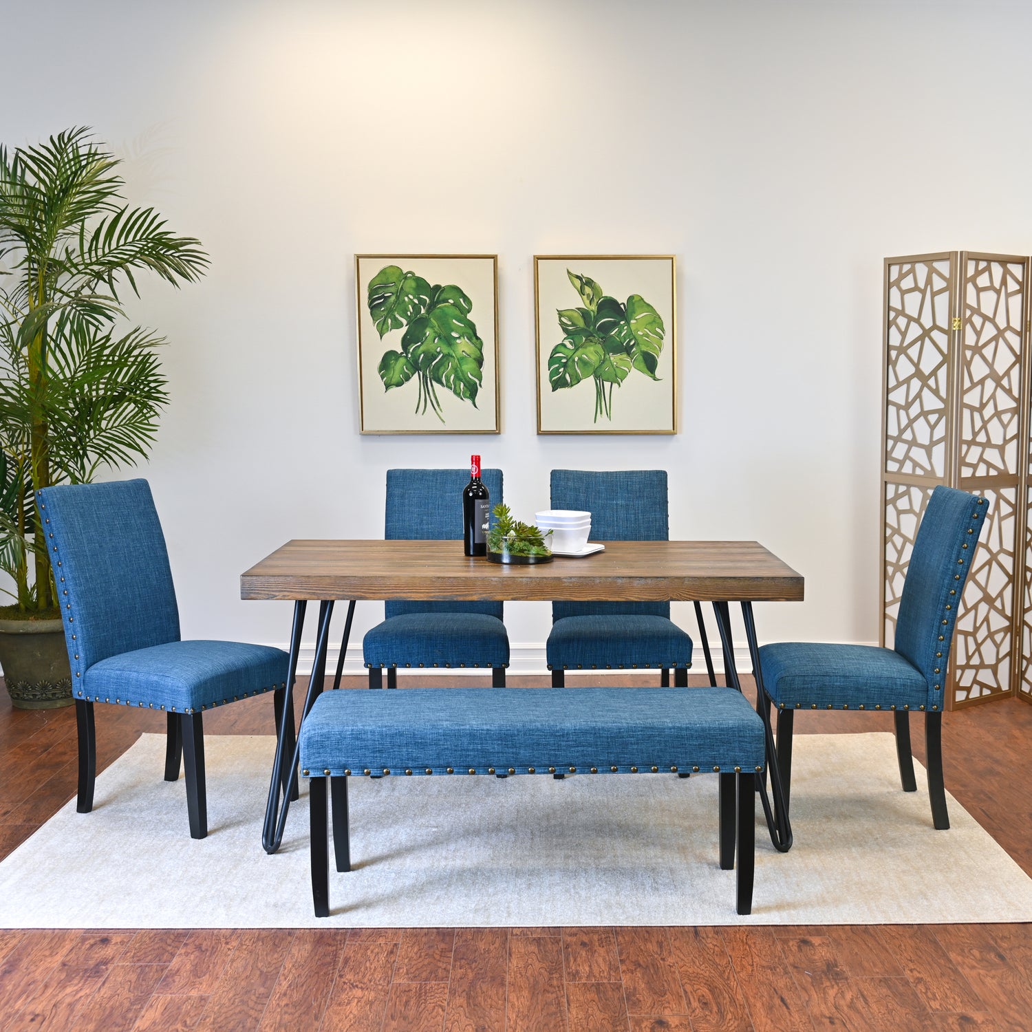 Juego de comedor Amisos de 6 piezas: mesa de comedor con diseño de horquilla, 4 sillas y banco tapizado, 3 opciones de color