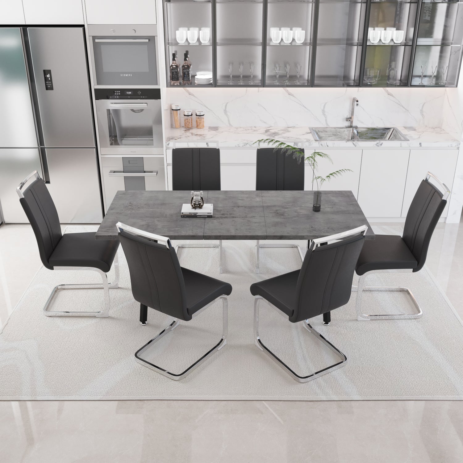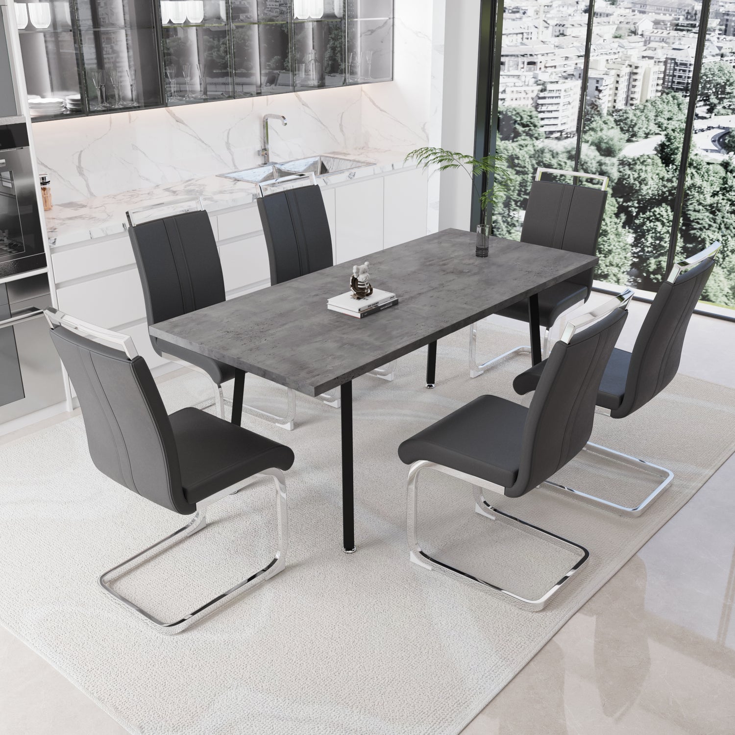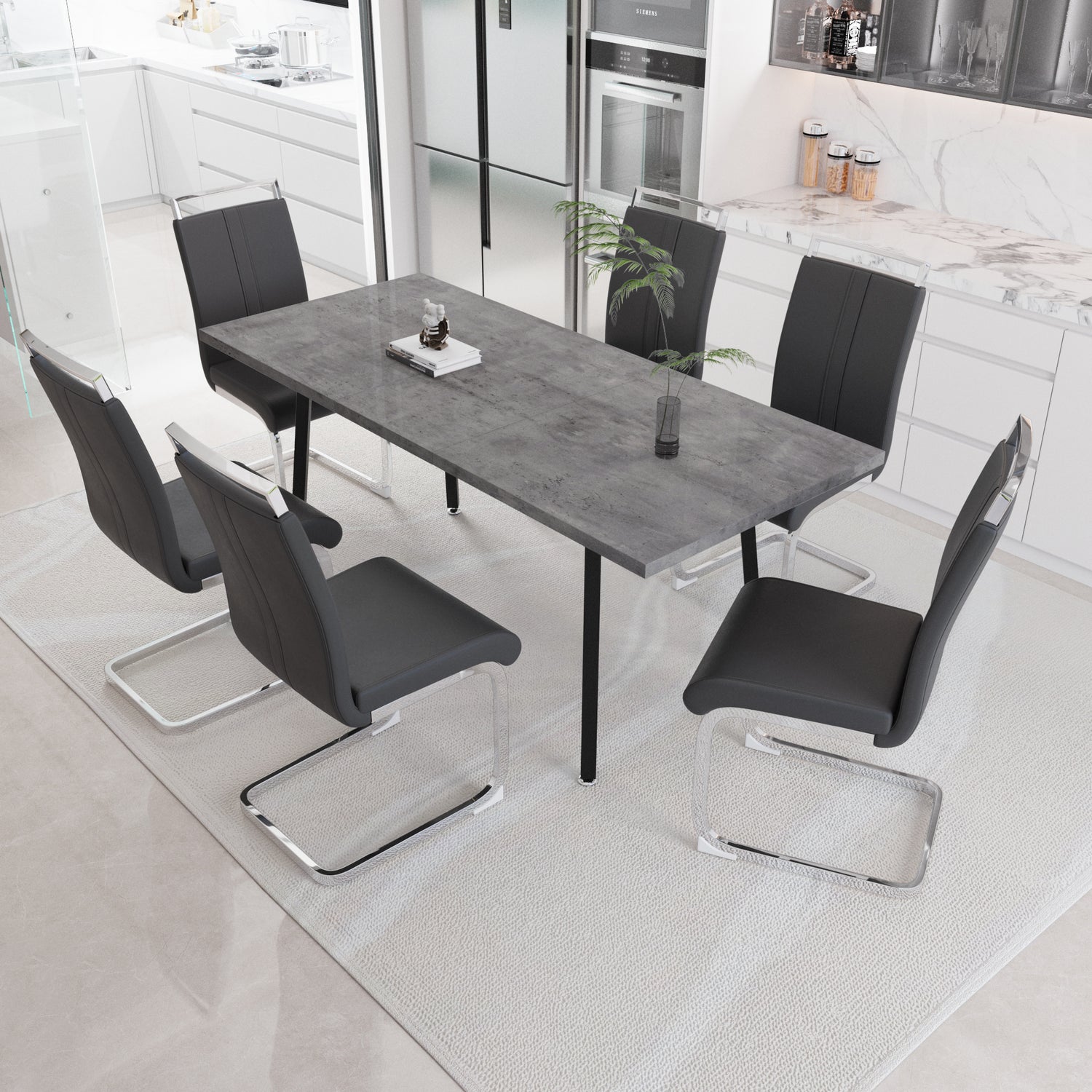 - 3. Mesa de comedor de estilo moderno: la combinación de patrones del Rin y mesas de comedor de color gris claro aporta un estilo industrial medieval a su restaurante, y es hermosa y práctica, lo que la convierte en una excelente opción para reuniones familiares o fiestas.
