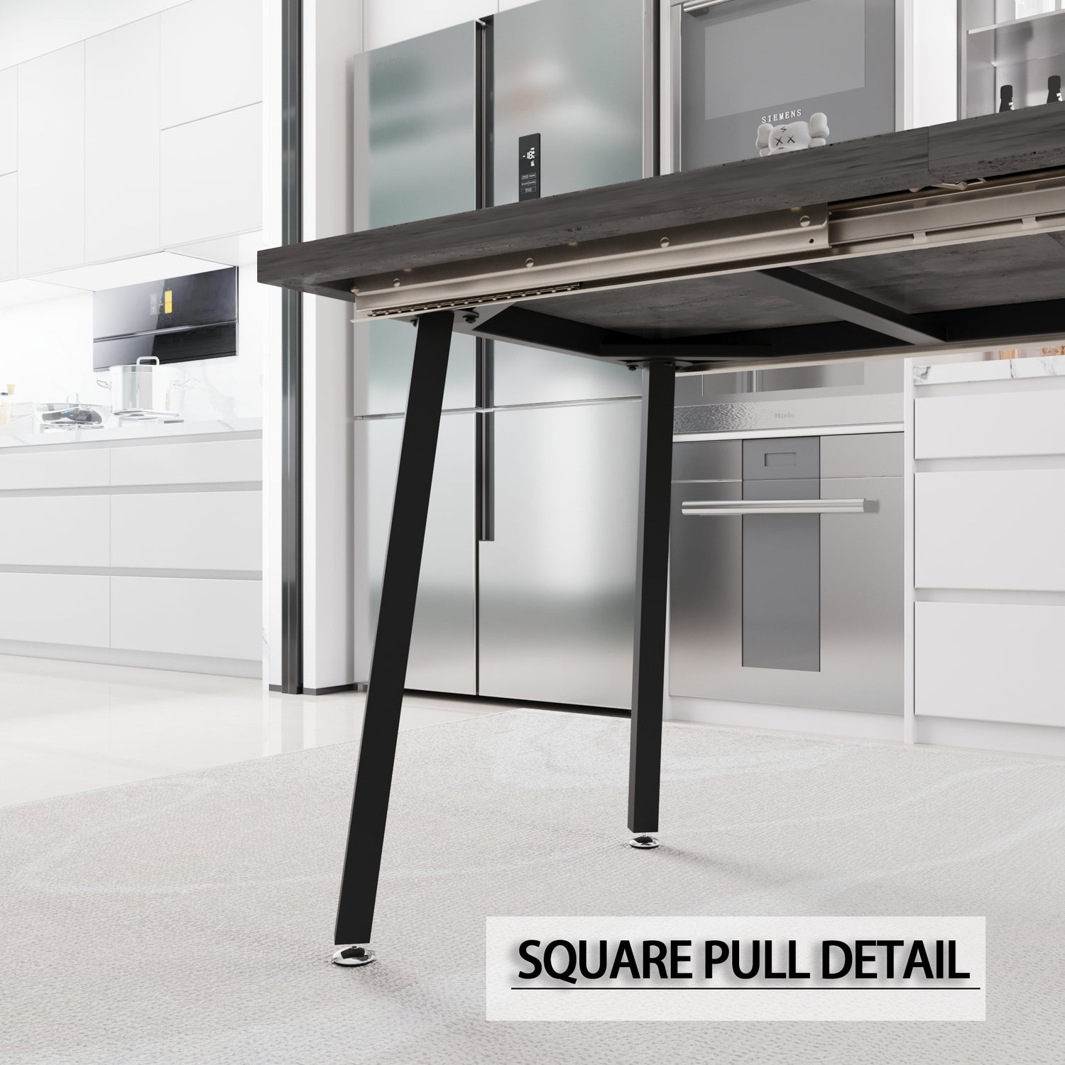 - 2. Mesa de comedor extensible: Para cenar en familia, se puede ocultar una parte de la mesa, lo que permite una cena íntima y cálida. En fiestas, se puede ampliar fácilmente para acomodar de 4 a 6 personas, y el amplio espacio debajo de la mesa la convierte en una mesa de comedor muy práctica y funcional.