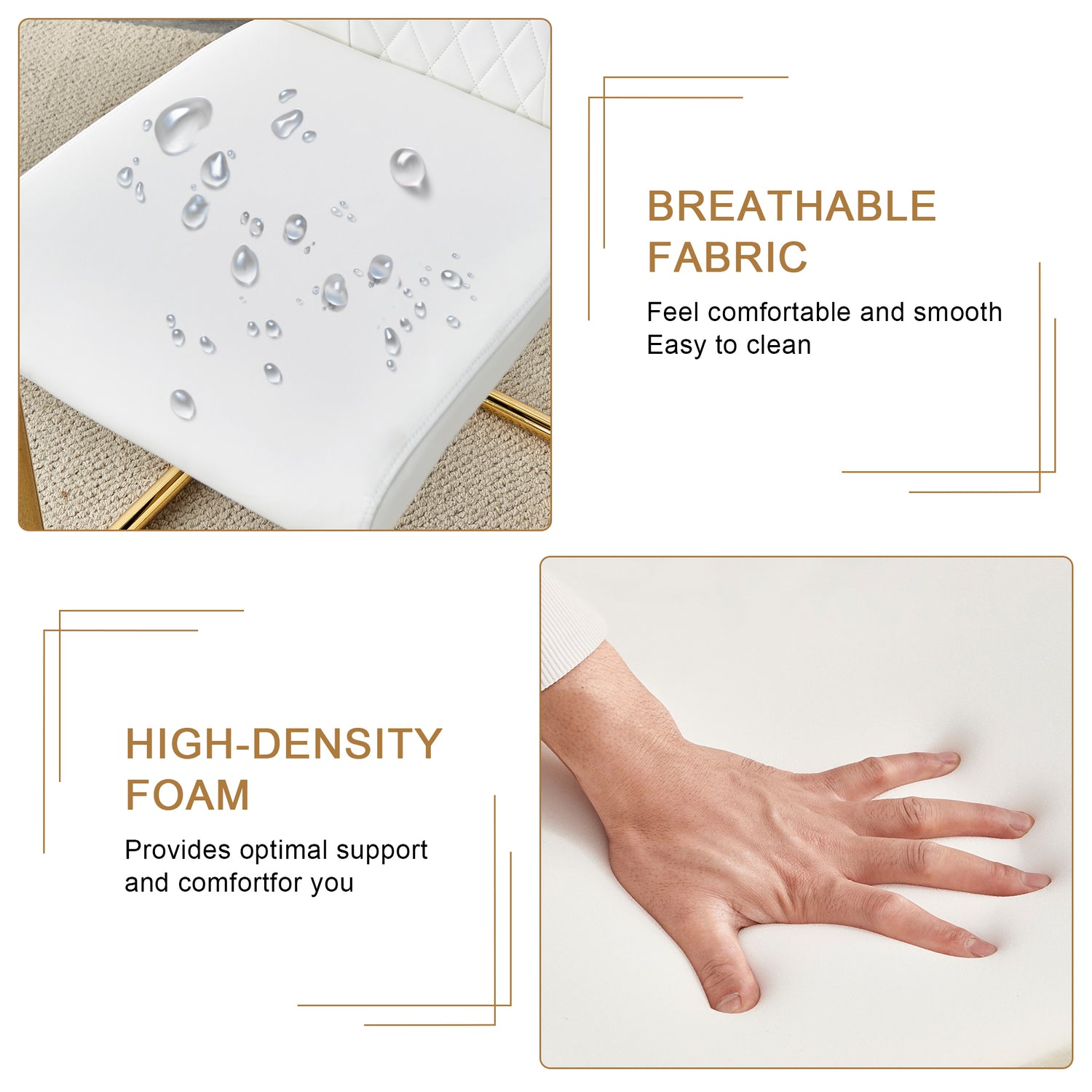 • Patas de metal arqueadas estables: las patas de metal arqueadas doradas no solo agregan una sensación de diseño, sino que también brindan un soporte fuerte, lo que garantiza la estabilidad y durabilidad de la silla. Manteniendo la seguridad del asiento durante el uso. Pies protectores antideslizantes: el diseño de pies antideslizantes en la parte inferior de las patas de la silla protege el piso de rayones y aumenta la seguridad de la silla durante su uso.