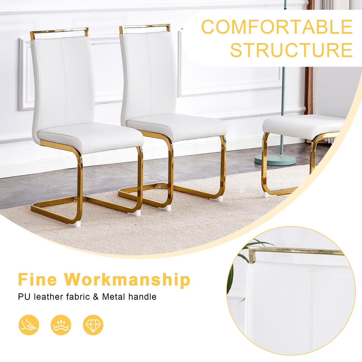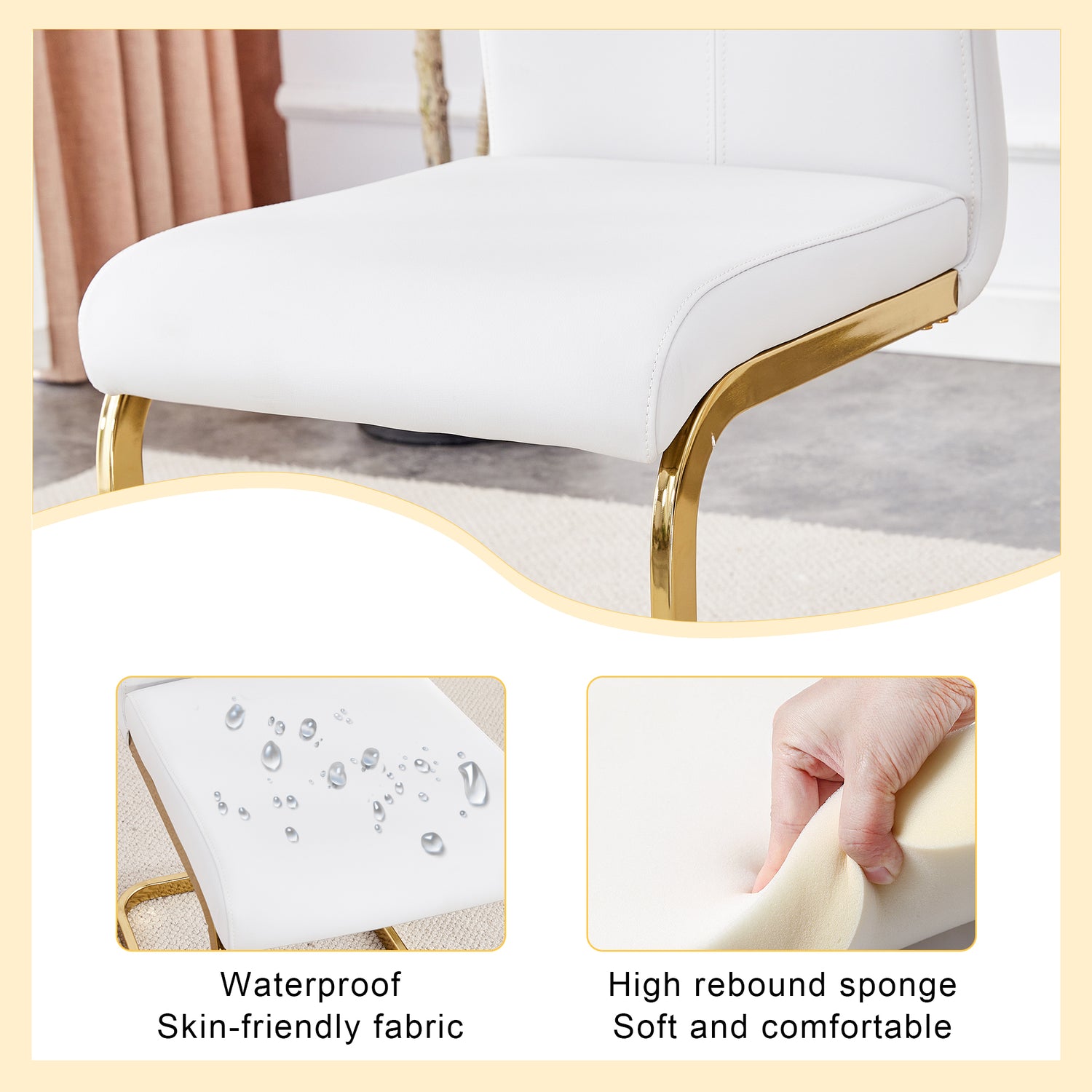 Juego de mesa y sillas. Elegante juego de comedor de vidrio templado transparente - 71'x35.4' con 8 sillas de PU blanco con patas de metal de tubo en C dorado. está agotado y se enviará tan pronto como vuelva a estar disponible.