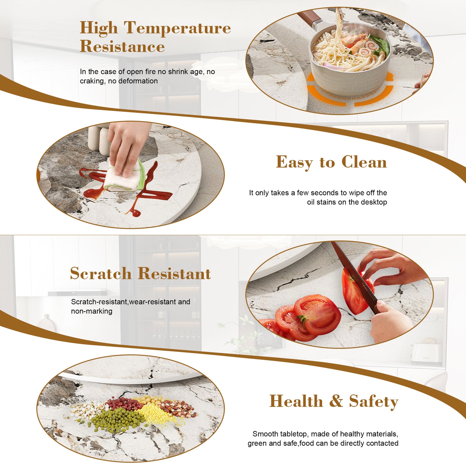 - 【Tablero de mesa de 53 pulgadas de ancho】El tablero de mesa de imitación de mármol está recubierto y pulido, no se raya ni se mancha fácilmente y puede acomodar cómodamente de 8 a 10 personas; el diseño de borde redondeado evita colisiones accidentales.