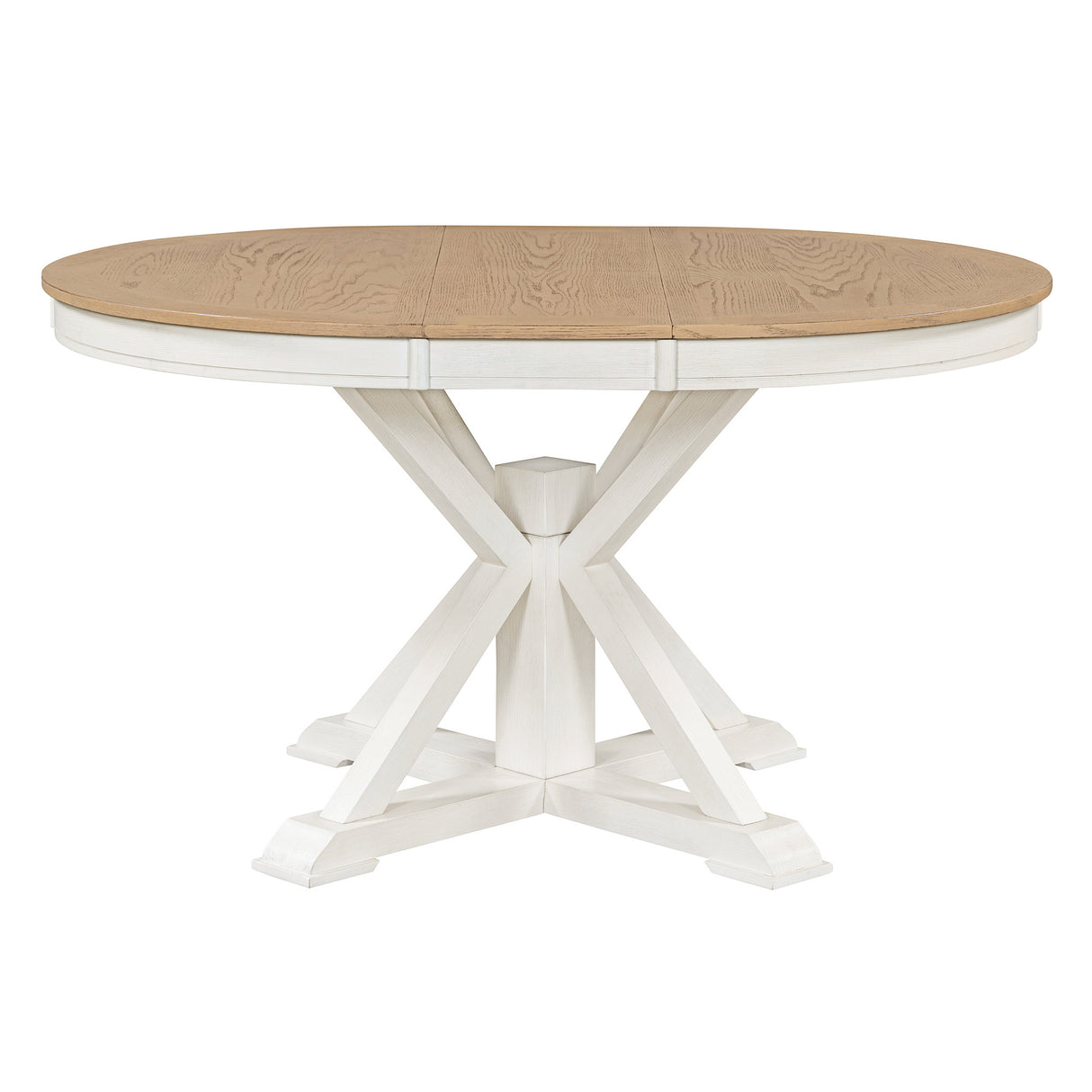 Juego de comedor TREXM Functional Furniture de estilo retro con mesa extensible y 4 sillas tapizadas para comedor y sala de estar (madera de roble natural + blanco roto)