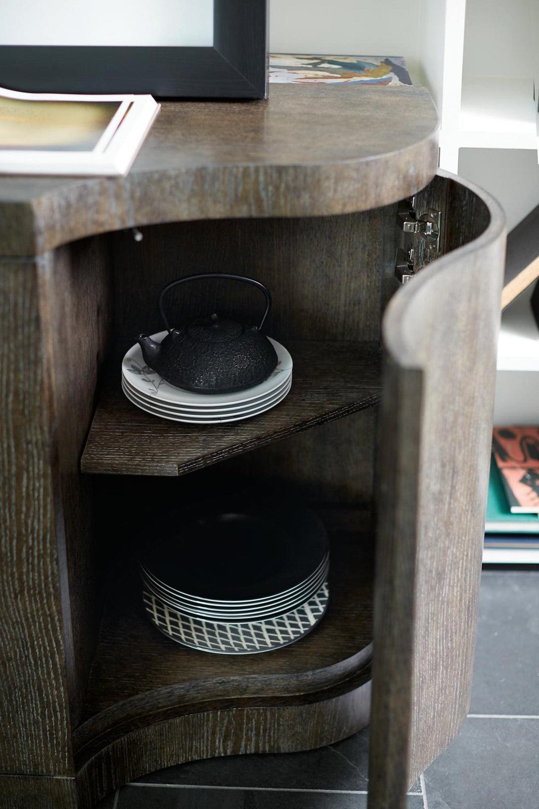 Bernhardt redefine el lujo informal con el aparador Linea , un aparador de 183 cm que combina chapas de roble color carbón Cerused con herrajes en grafito texturizado . Con puertas de apertura a presión y acabados cepillados, este aparador ofrece un refinado estilo rústico moderno, ideal para comedores o salas de estar contemporáneos. Parte de la galardonada colección Linea, esta pieza combina la simplicidad escultural con el diseño funcional.