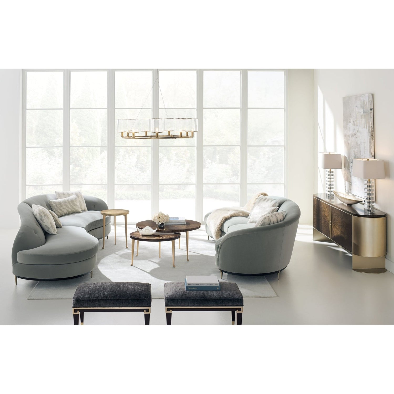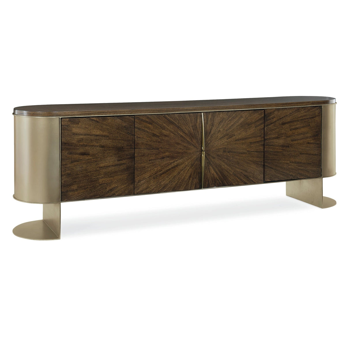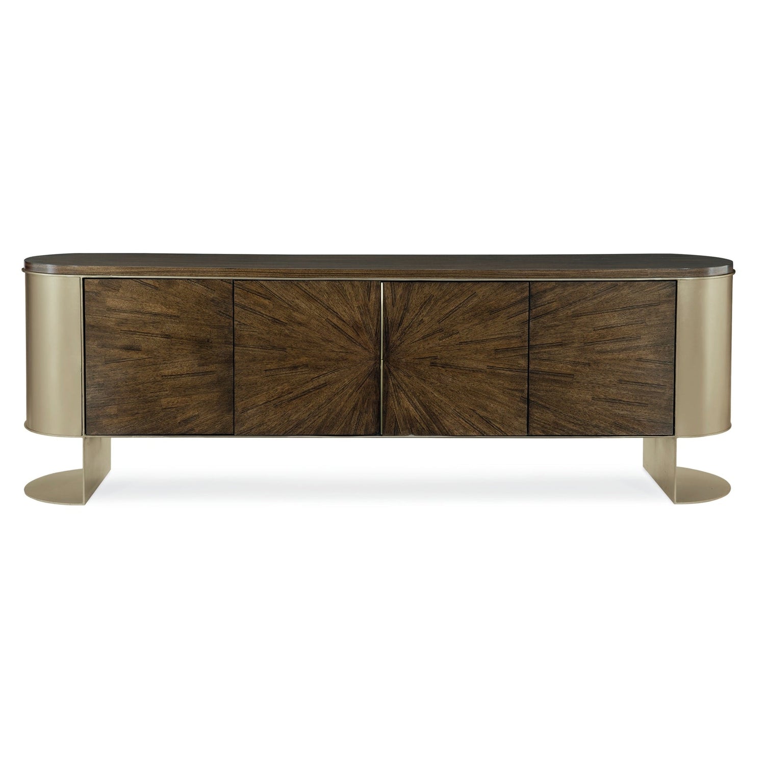 - Estructura de metal con extremos metálicos curvados en acabado Hoja Rubia Dorada.