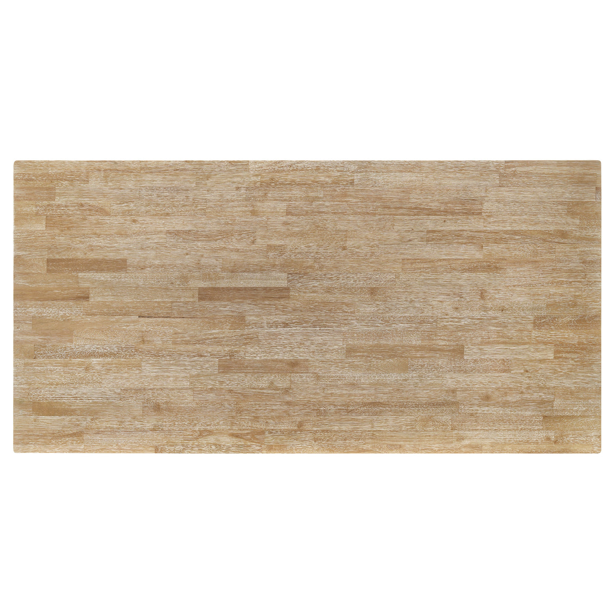 - El diseño de mesa de dos tonos presenta una base blanca nítida y un tablero de madera marrón cepillado con alambre.