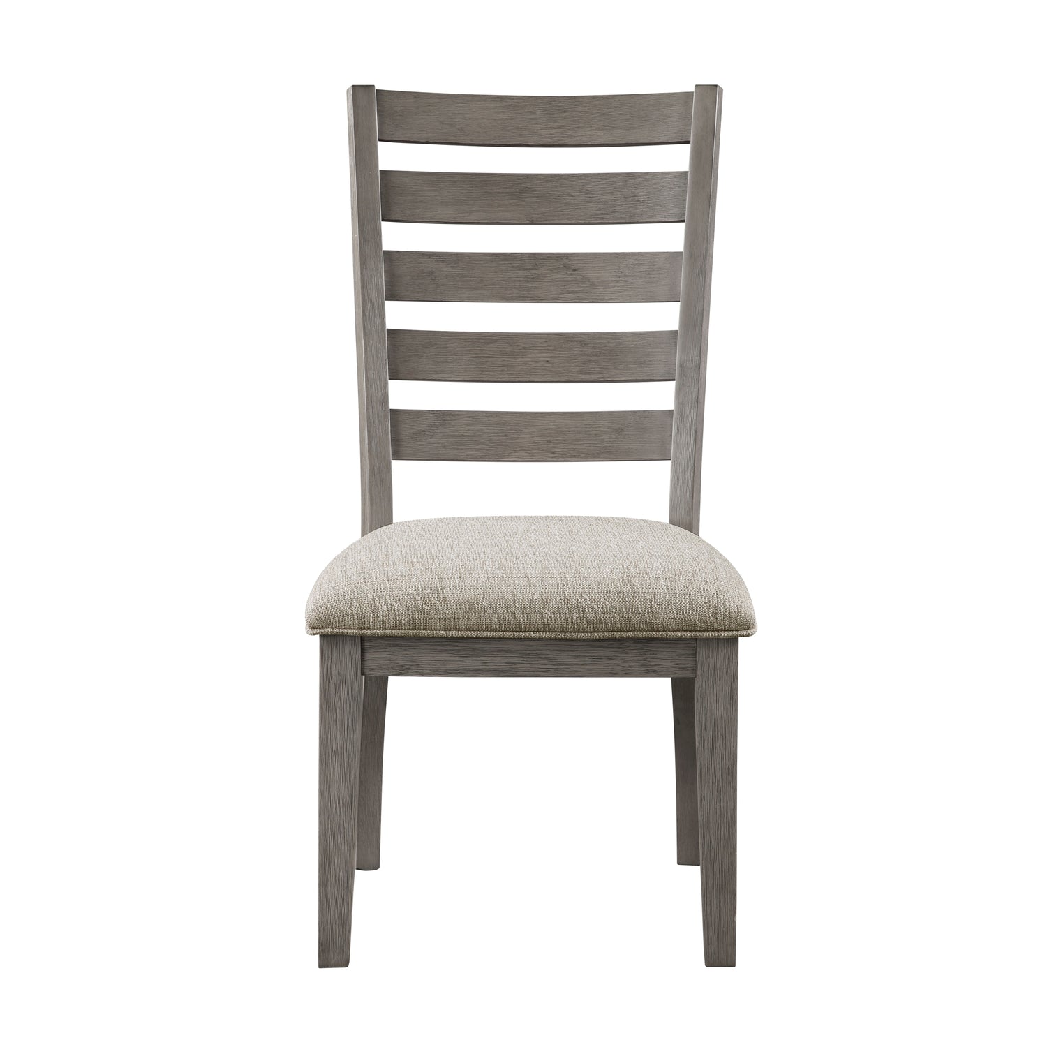 Juego de comedor de 7 piezas de estilo tradicional con acabado gris, mesa con cajones y 6 sillas laterales, diseño de respaldo de escalera, muebles de madera