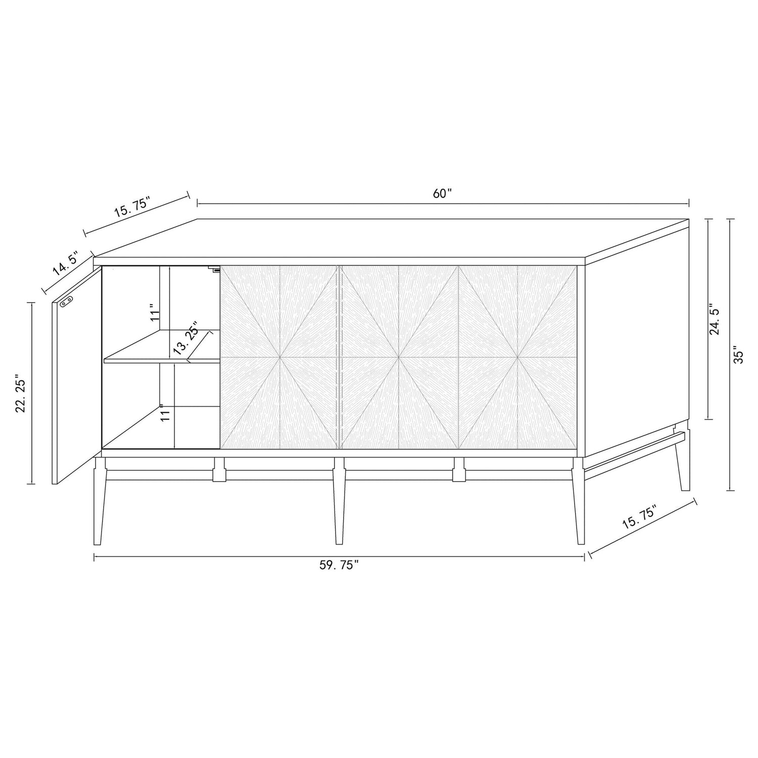 Mueble auxiliar Zira Sunburst de 4 puertas, marrón y dorado antiguo | Coaster está agotado y se enviará tan pronto como vuelva a estar disponible.